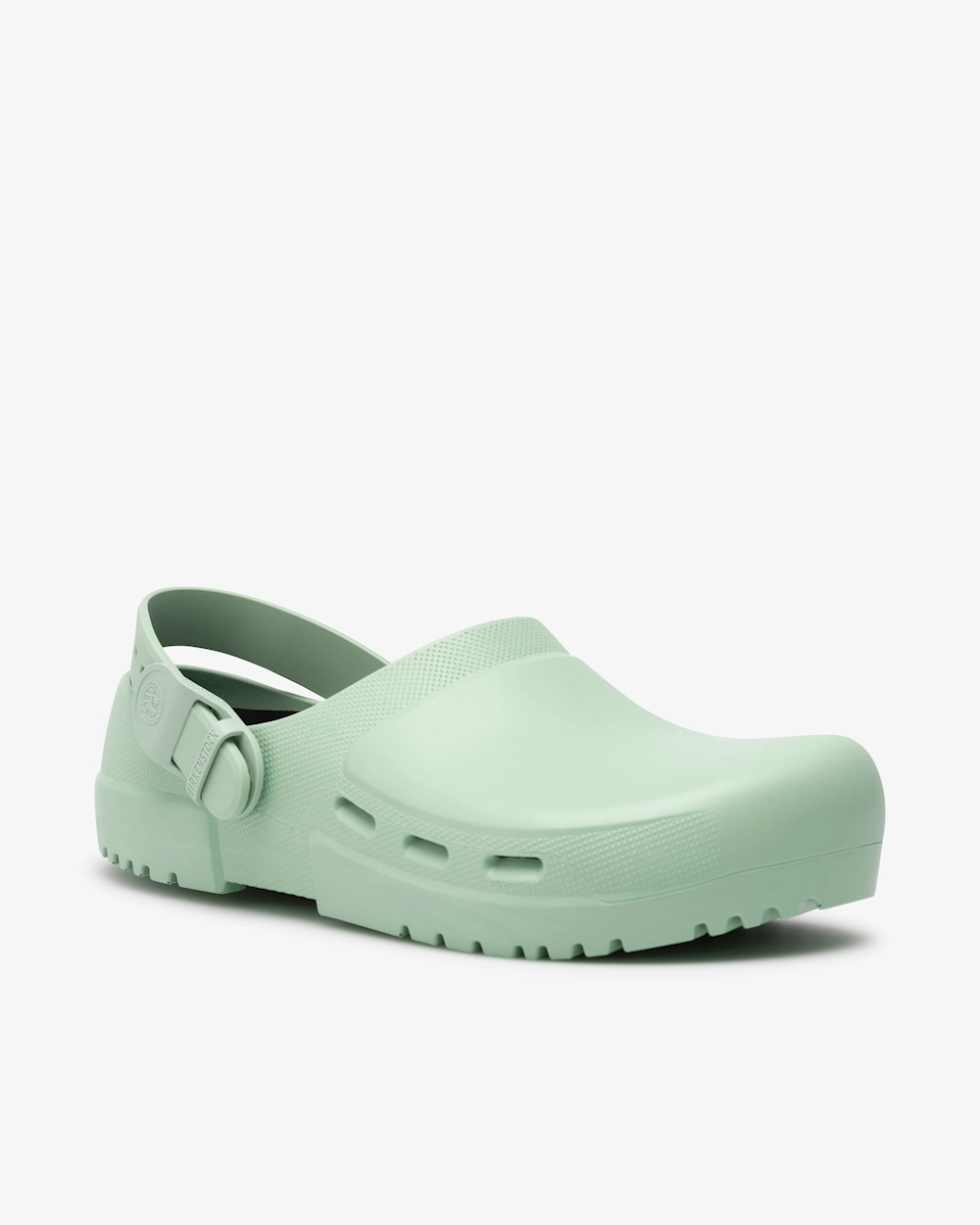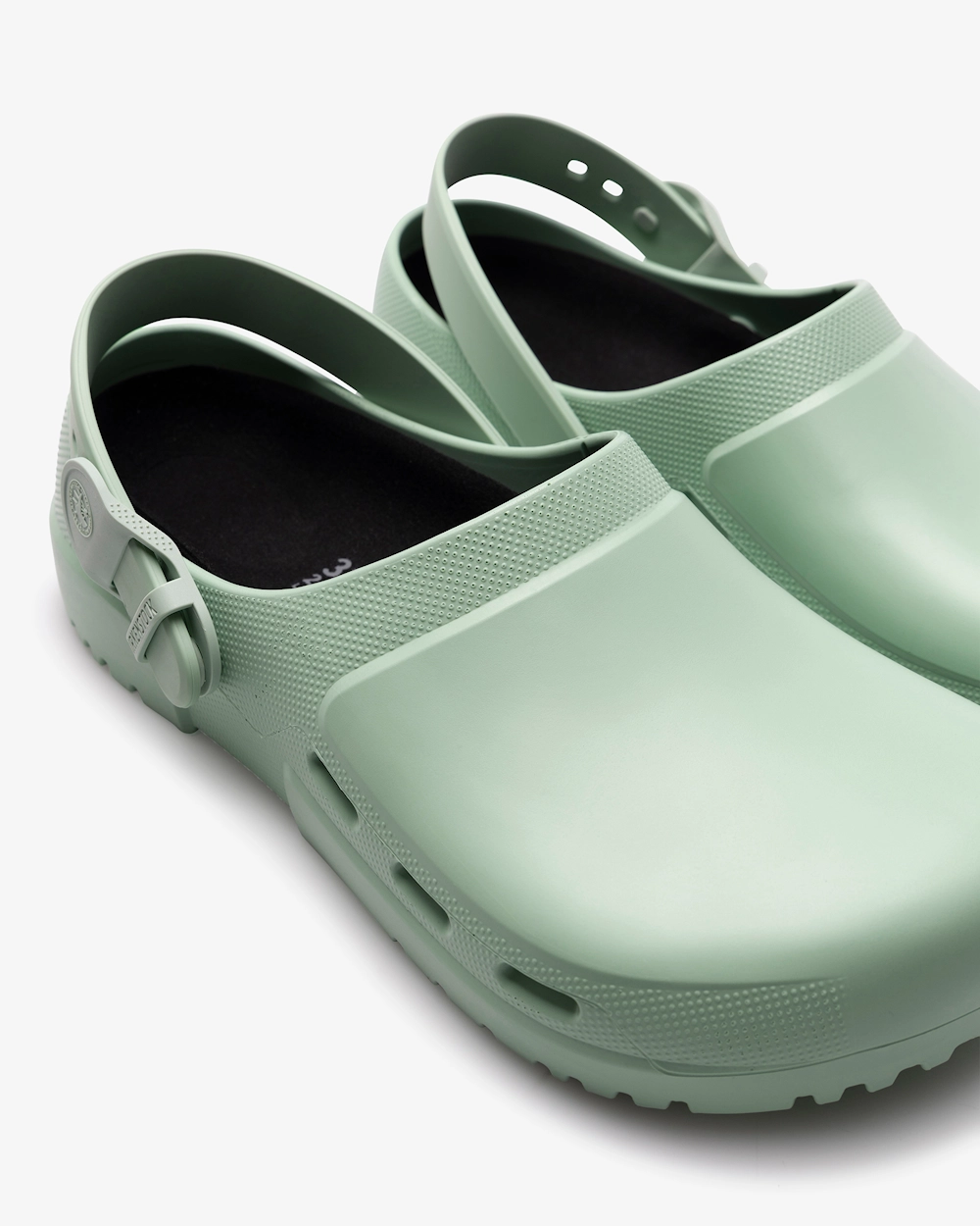 Birkenstock Birki Air 2.0 on täydellinen työpistokas terveydenhuollon ammattilaisille. Anatomisesti muotoillulla PU-välipohjalla (polyuretaani) ja mikrokuituvälisellä mukavuus on optimaalinen pitkien työvuorojen aikana. Antistaattinen ja öljyn- ja rasvankestävä pohja takaa turvallisuuden ja vakauden. Pistokkaassa on sivulla ilmanottoaukot, jotka pitävät jalkasi viileinä ja raikkaina. Säädettävä kantahihna tarjoaa yksilöllisen istuvuuden ja lisätuen, mikä tekee Birki Air 2.0 -pistokkaista sekä toimivan että mukavan ratkaisun. Täydellinen valinta niille, jotka arvostavat korkeaa laatua ja ergonomiaa työympäristössä.