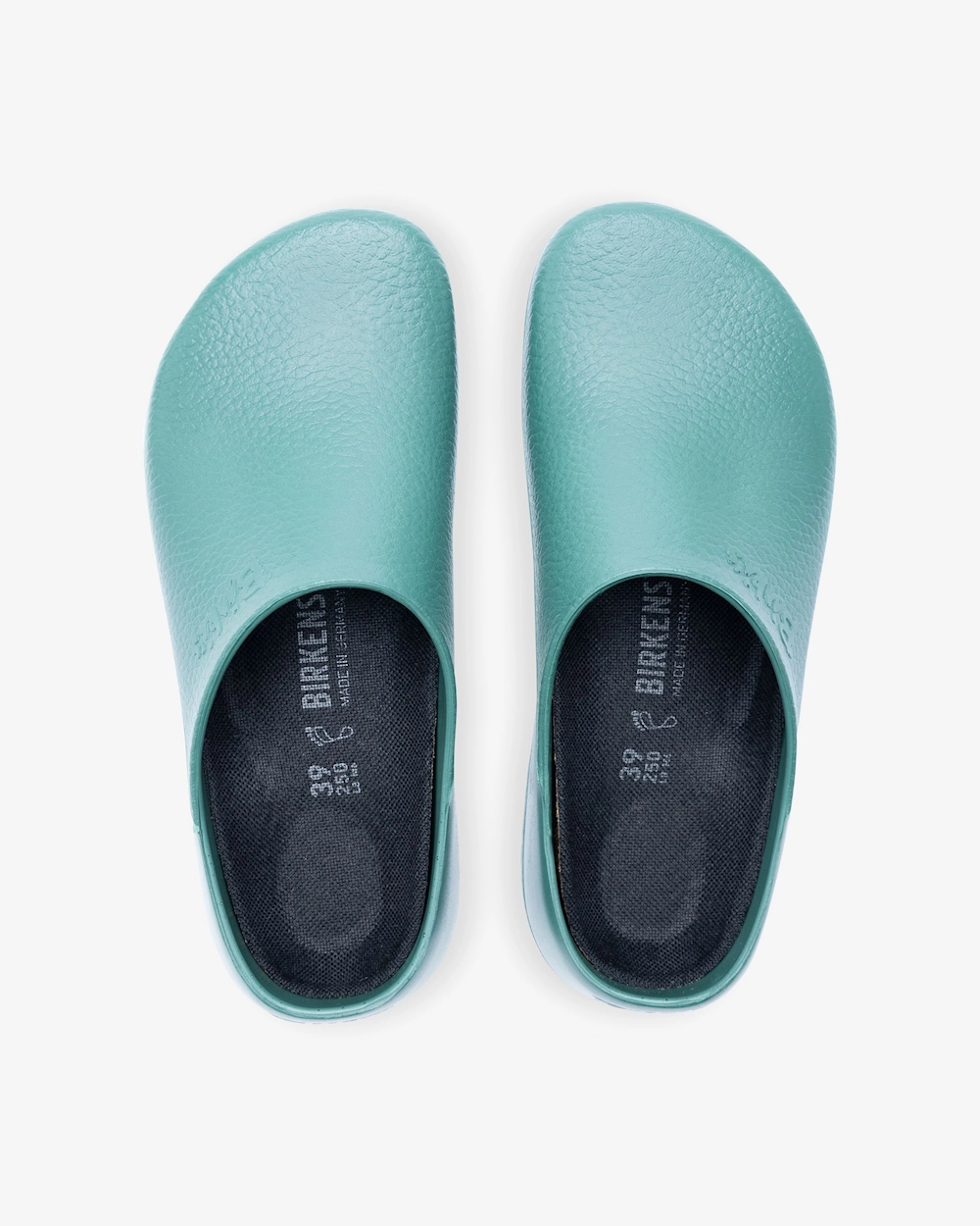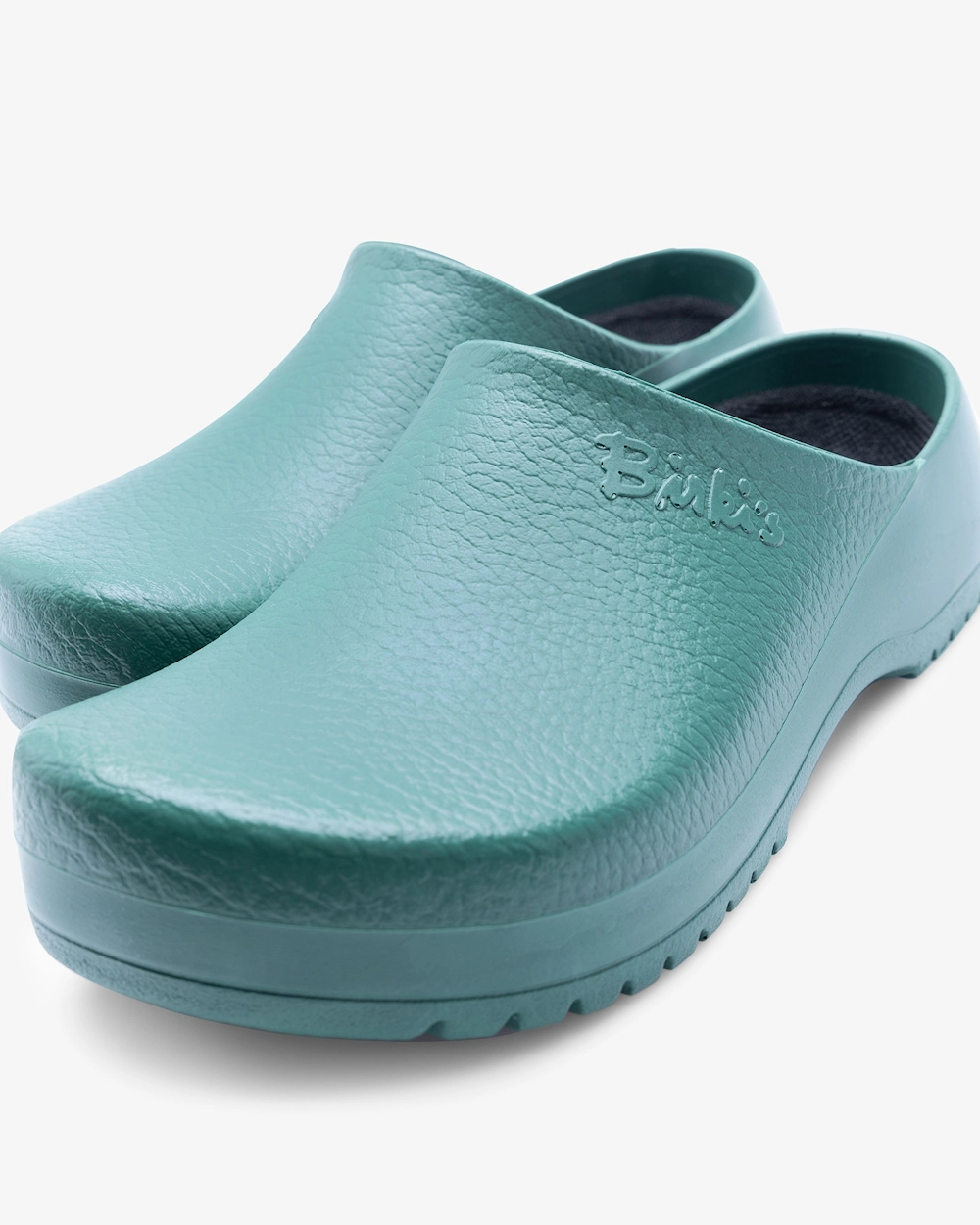 Birkenstock Super Birki on kestävä hygieniakenkä, joka voidaan pestä jopa 60 °C:ssa. Kengässä on liukumaton pohja, joka on öljyn- ja rasvankestävä ja antaa hyvän pidon pintaan. Sen anatomisesti suunnitellussa pohjallisessa on kosteutta hylkivä päällinen puhdistamisen helpottamiseksi. Pohjallinen on vaihdettavissa ja voidaan pestä jopa 30°C:ssa.