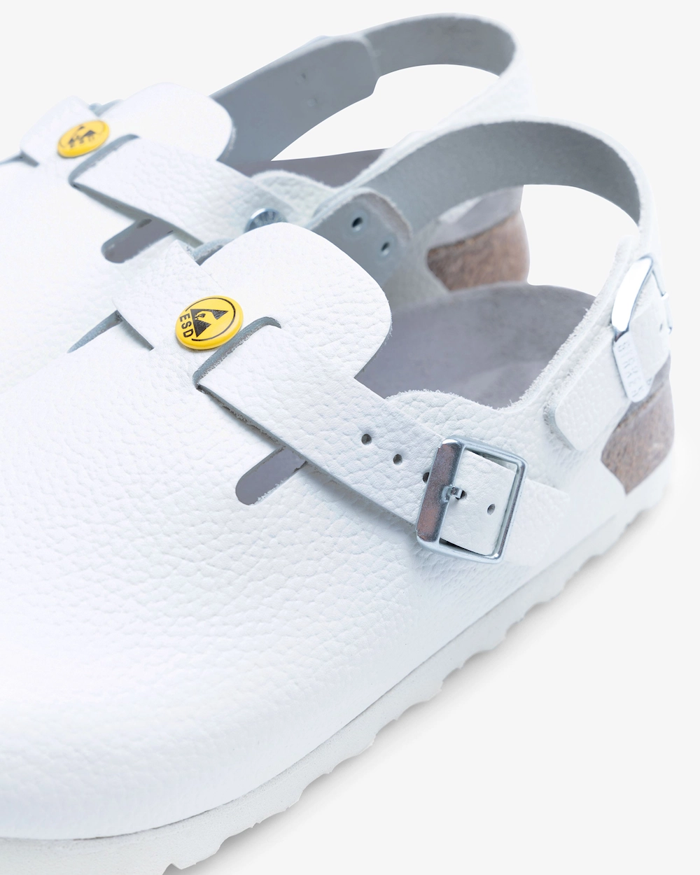 Birkenstock Tokio ESD estää sähköpurkauksia ja sitä voidaan käyttää suosiolla sähköteknisissä ammateissa. Erityisesti kehitetyn ESD-pohjan ansiosta kenkä tarjoaa jatkuvia mikropurkauksia, mikä suojaa sekä yksilöä että sähköisiä komponentteja.