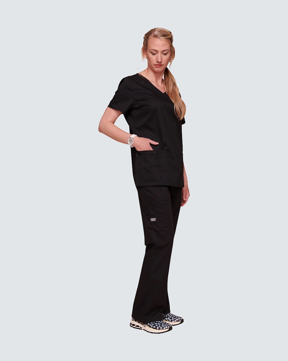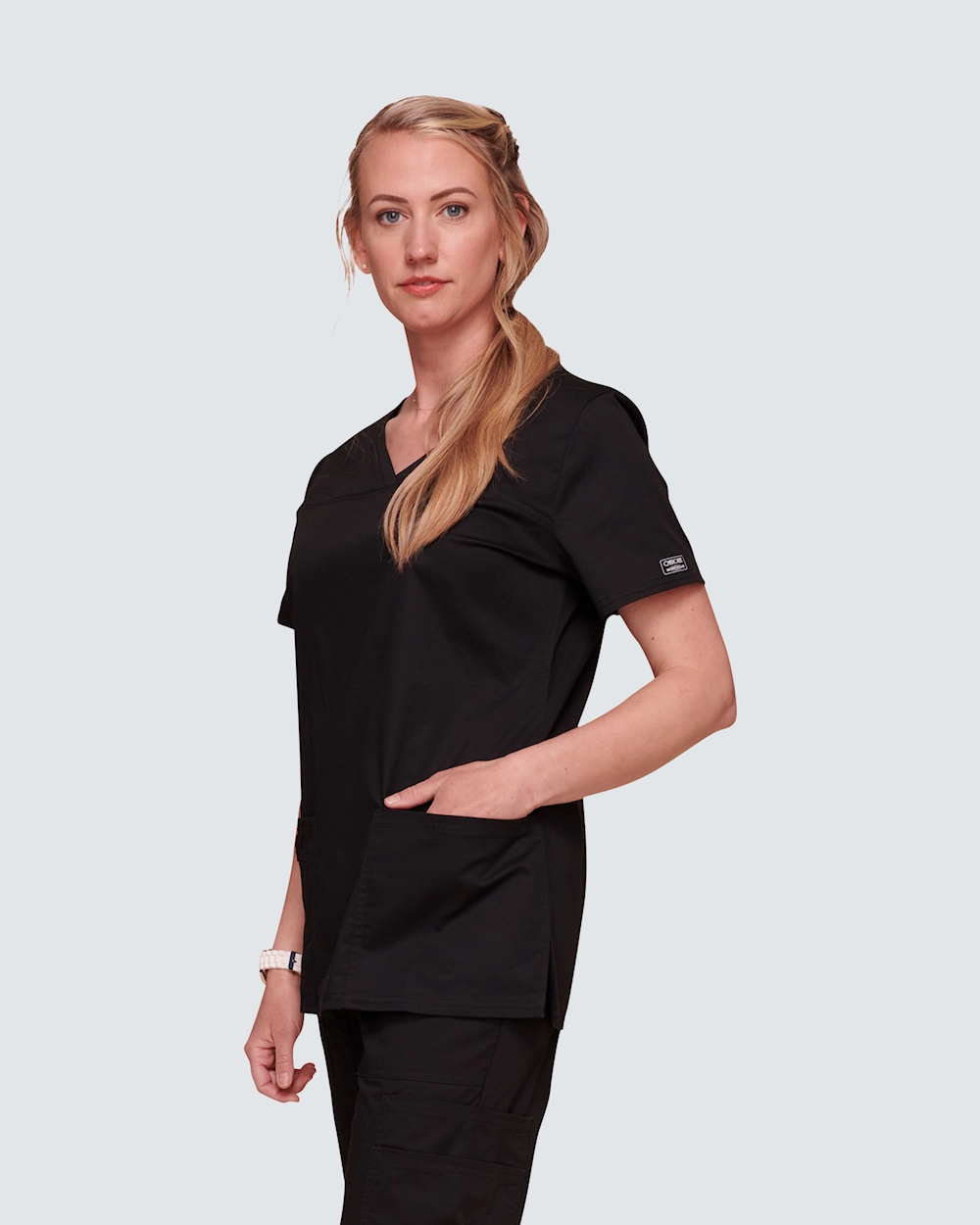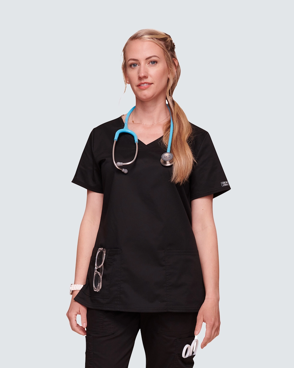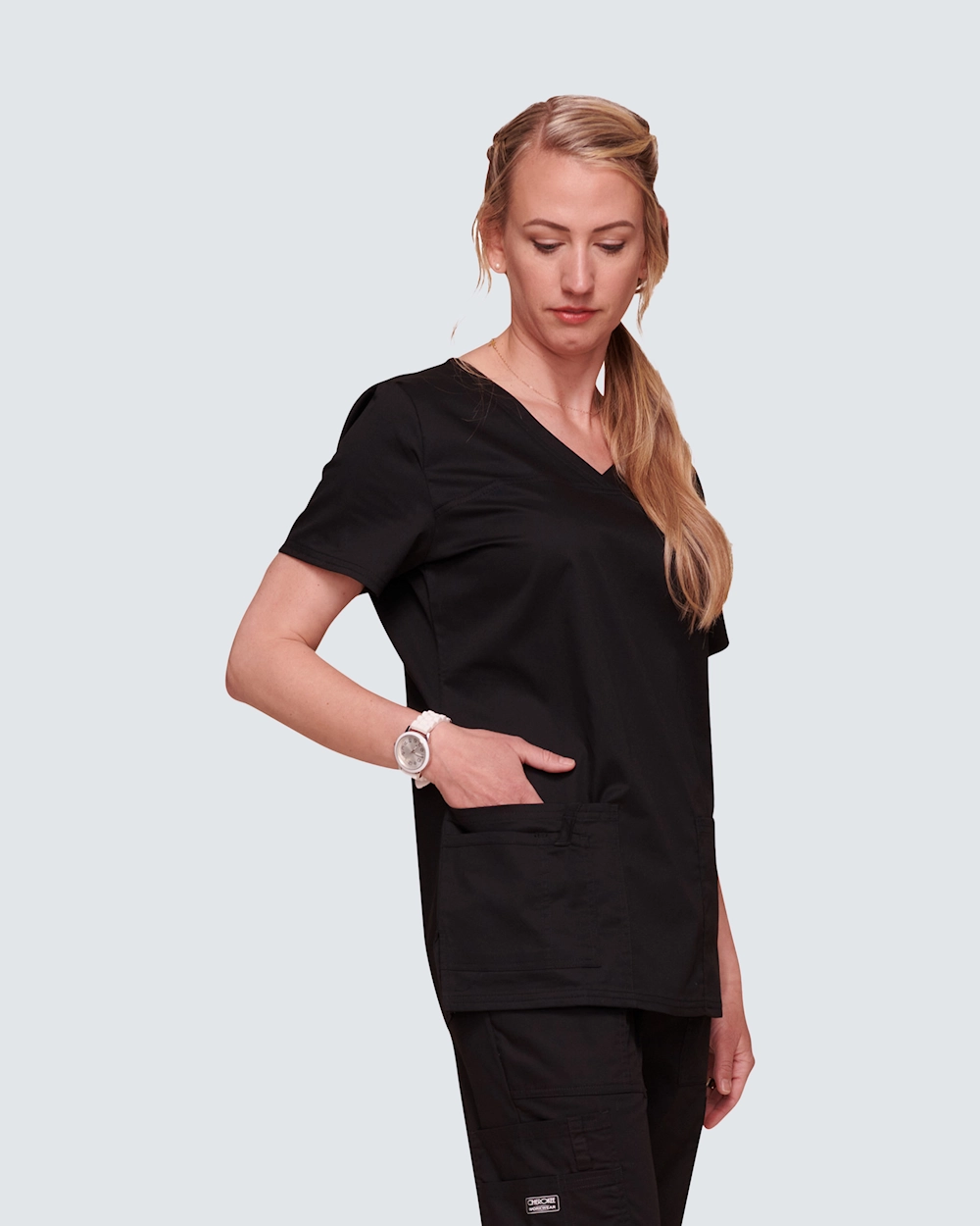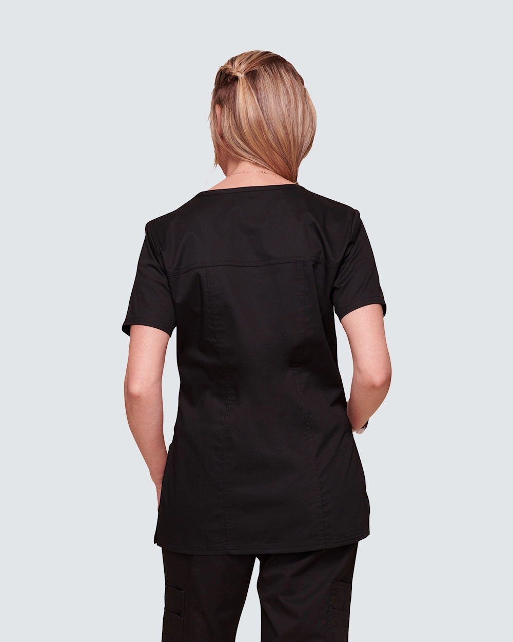 Tunika on valmistettu kestävästä materiaalista, jossa on kaksisuuntainen joustavuus ja hyvä hengittävyys. Kolme käytännöllistä taskua ja turvallinen kortinpidike/avainrengas takaavat, että tärkeimmät esineet ovat aina käden ulottuvilla. Tunikassa on kaarroke sekä edessä että takana, ja sen sivuilla on halkiot, jotka lisäävät liikkuvuutta ja mukavuutta. Tyylikäs ja ammattimainen käyttö sosiaali- ja terveydenhuollossa.