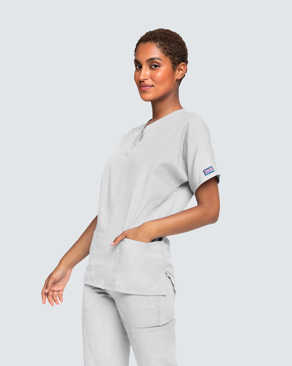 Cherokee-tunika v-pääntiellä on täydellinen valinta kaikille, jotka etsivät kestäviä ja toimivia työvaatteita klassisessa mallissa. Tunikassa on tyylikäs v-aukko ja käytännölliset halkiot sivuilla, jotka tarjoavat erinomaisen liikkumisvapauden. Se on varustettu kahdella tilavalla taskulla ja puhelintaskulla, ja se täyttää älykkään säilytyksen tarpeesi. Optimaalinen yhdistelmä klassisia ominaisuuksia ja tyyliä!