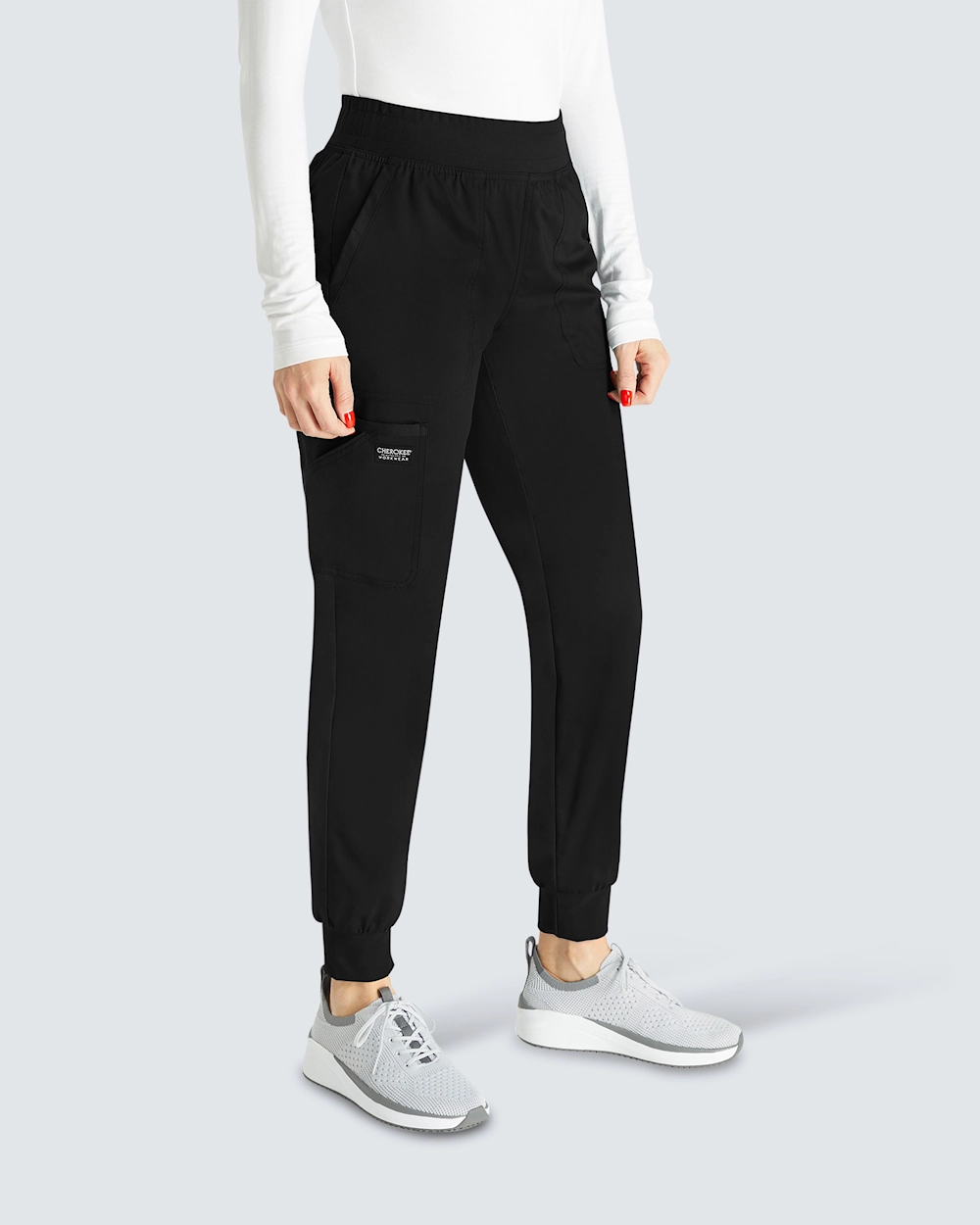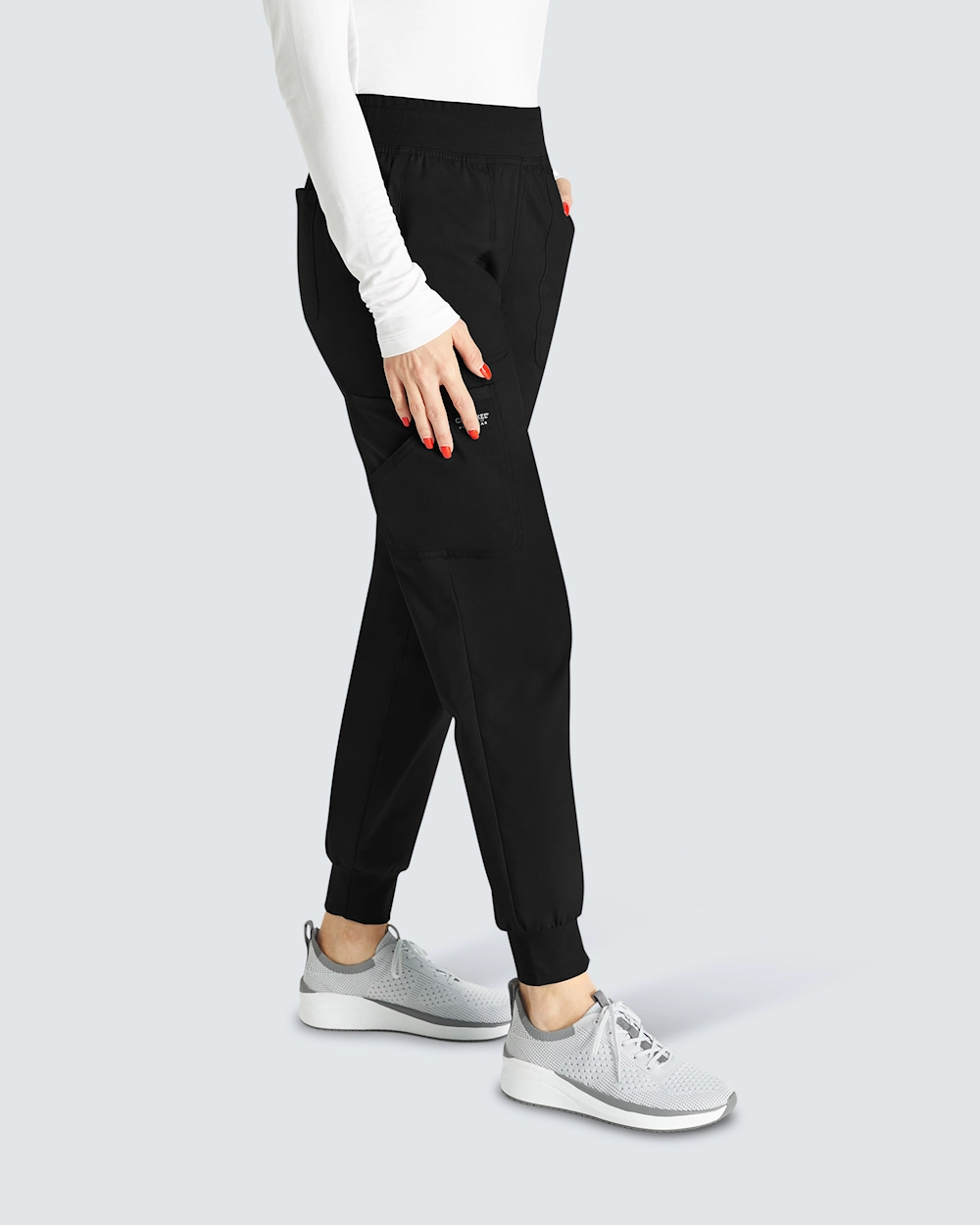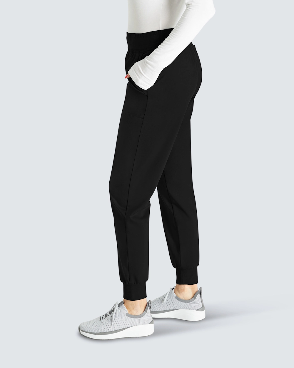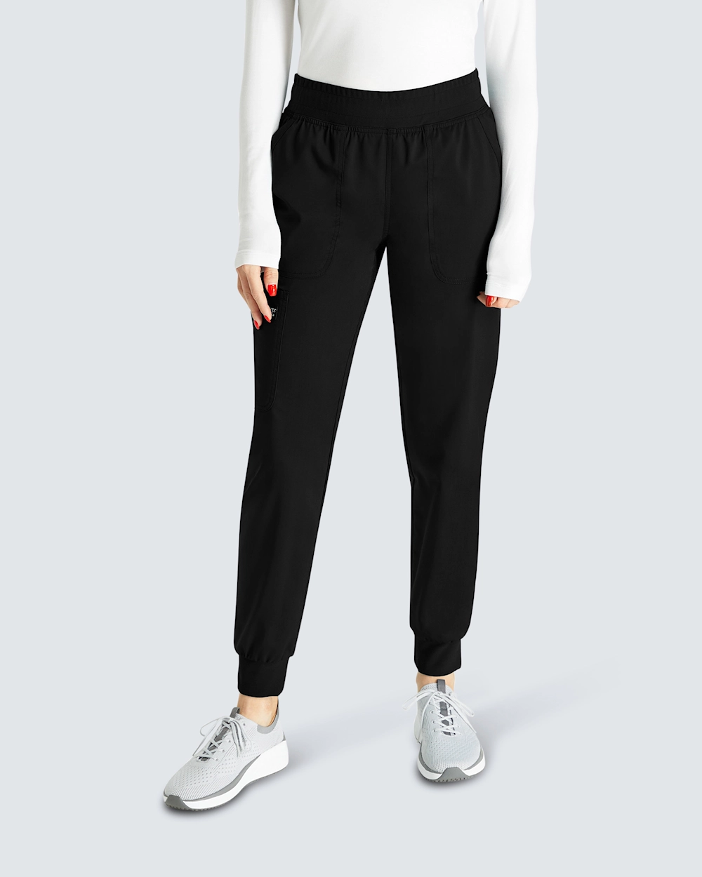 Näissä klassisissa hölkkätyylisissä mansettihousuissa yhdistyvät tyyli ja toiminnallisuus terveydenhuollon ammattilaisille. Keskikorkean vyötärön, joustavan vyötärönauhan ja kiristysnauhan ansiosta ne tarjoavat mukavuutta koko päivän. Taskuissa on viistot etutaskut, takatasku ja kaksinkertainen sivutasku, jossa on instrumenttisilmukka, jotta työkalut ovat helposti saatavilla. Niiden moderni siluetti sopii täydellisesti sekä ammatillisiin että dynaamisiin työympäristöihin.