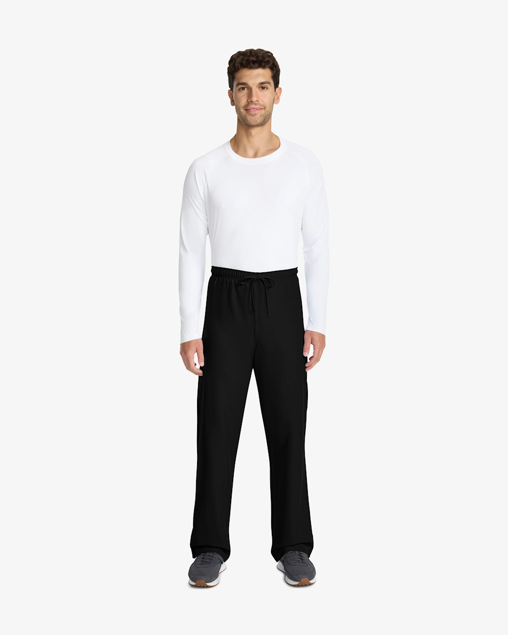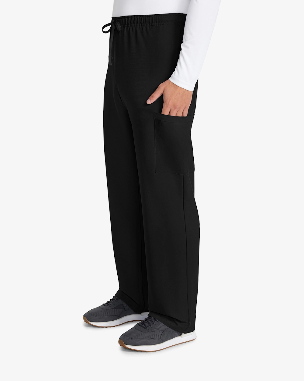 Klassiset unisex-työhousut, joissa on suora istuvuus ja kiristysnauha vyötäröllä. Housuissa on kolme käytännöllistä taskua, koristeellinen helma ja tummansävyiset koristetikkaukset, jotka viimeistelevät housun tyylikkäästi. Valmistettu PROTX2-kankaasta, jossa on antimikrobisia ja hajuja hylkiviä ominaisuuksia, mikä takaa mielenrauhan päivittäisessä hoidossa. Mekaanisesti kudottu 2-suuntainen stretch optimaalista liikkumisvapautta ja koko päivän mukavuutta varten.