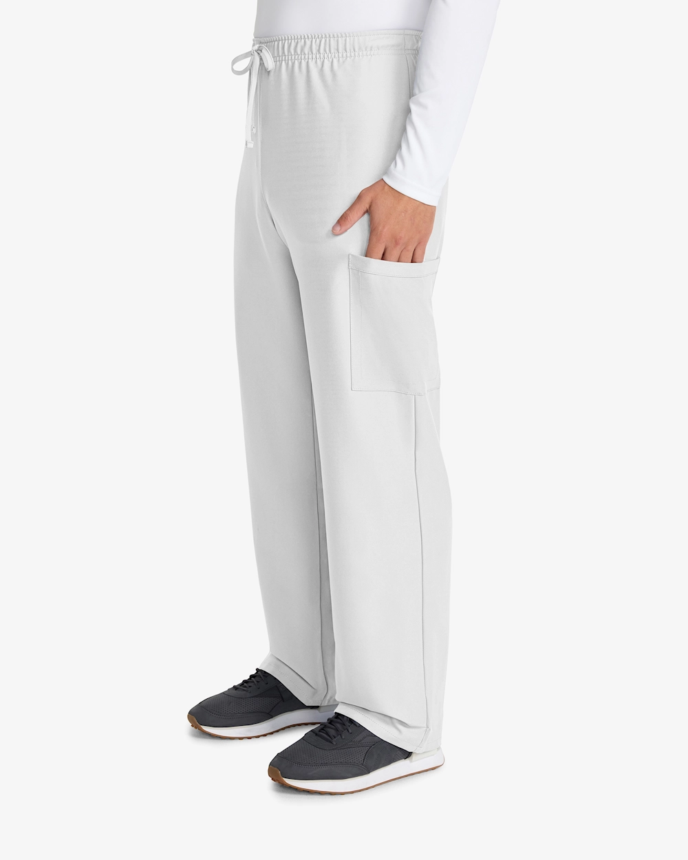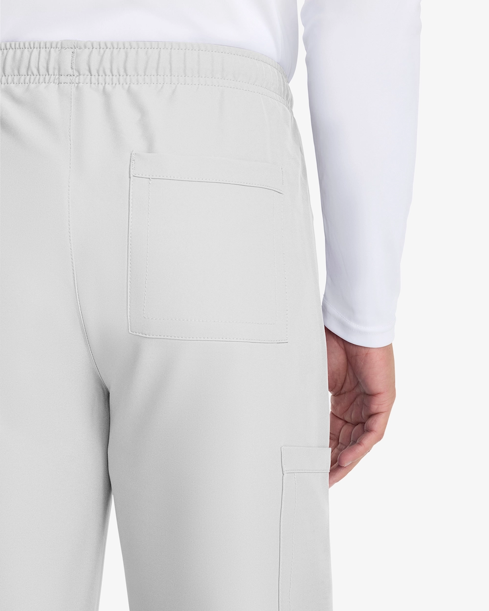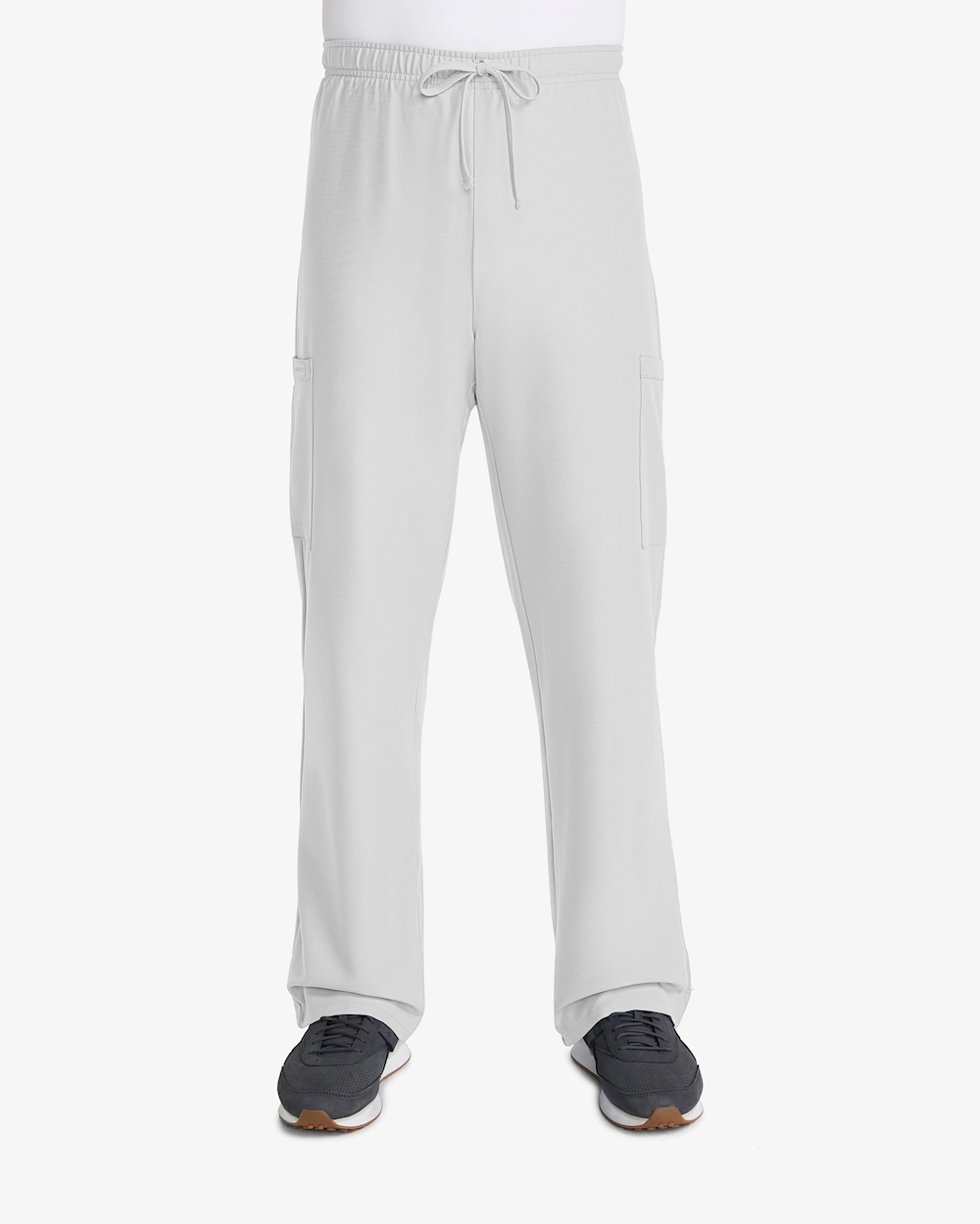 Klassiset unisex-työhousut, joissa on suora istuvuus ja kiristysnauha vyötäröllä. Housuissa on kolme käytännöllistä taskua, koristeellinen helma ja tummansävyiset koristetikkaukset, jotka viimeistelevät housun tyylikkäästi. Valmistettu PROTX2-kankaasta, jossa on antimikrobisia ja hajuja hylkiviä ominaisuuksia, mikä takaa mielenrauhan päivittäisessä hoidossa. Mekaanisesti kudottu 2-suuntainen stretch optimaalista liikkumisvapautta ja koko päivän mukavuutta varten.