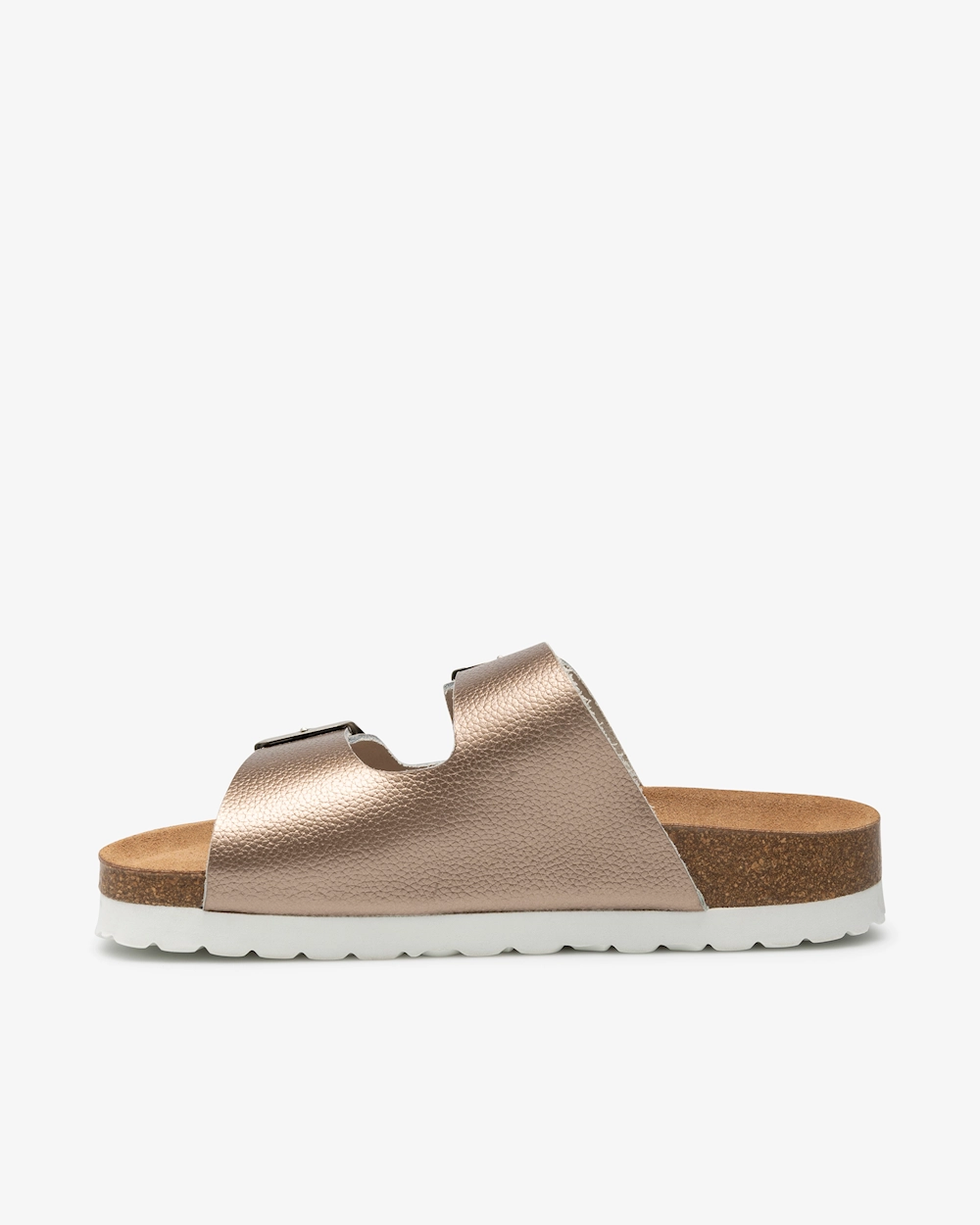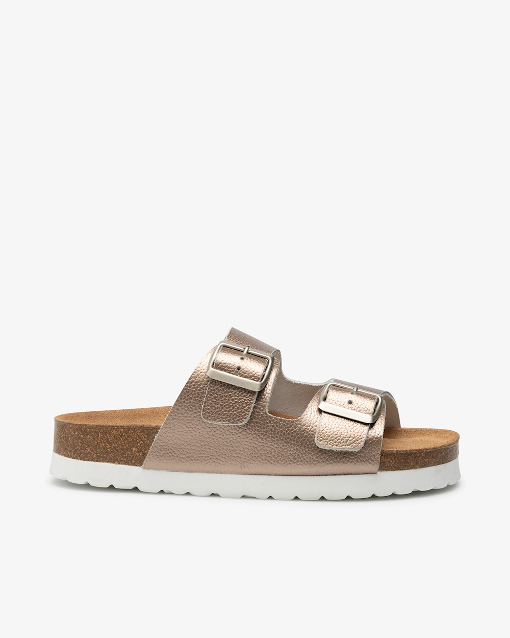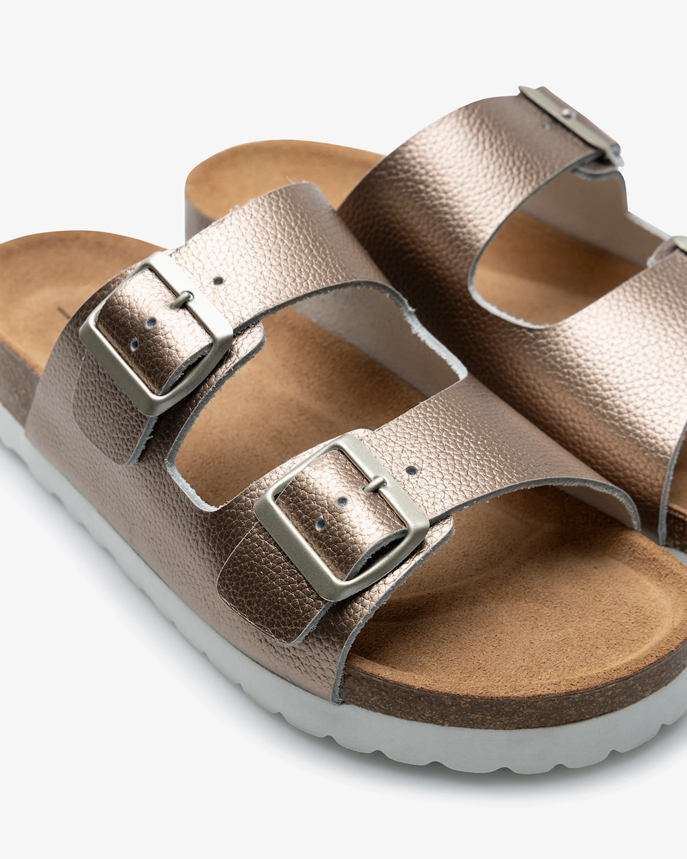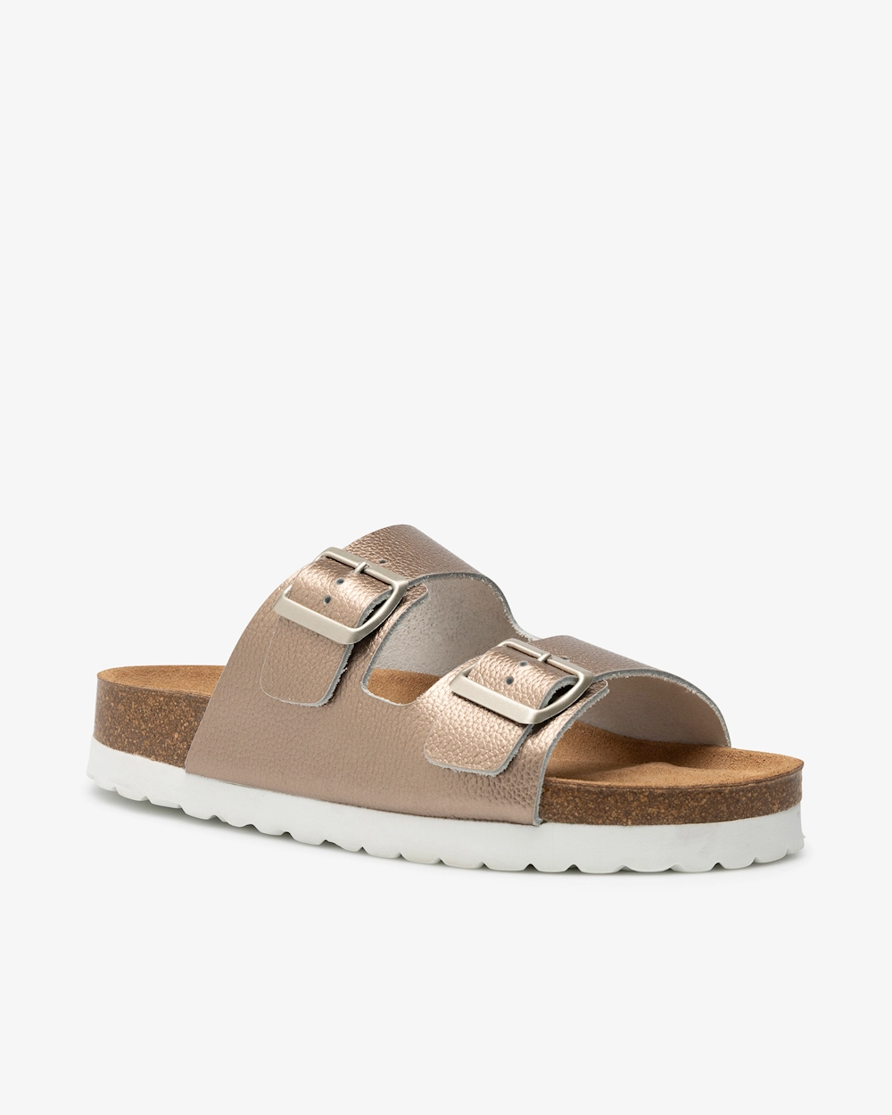 Mukava naisten nahkasandaali, jossa on anatomisesti muotoiltu korkkijalkapohja ja litteä pohja. Nahkapäällysteinen jalkapohja antaa lisätukea jalkaholville, ja siinä on muotoiltu kantapää. Sandaali tarjoaa mukavan iskunvaimennuksen, ja EVA-pohjallinen takaa hyvän pidon maassa. Kaksi soljella varustettua, säädettävää hihnaa mahdollistavat optimaalisen istuvuuden. Soveltuu hyvin niille, jotka kärsivät jalkavaivoista, kuten kantapääongelmista, litteistä jaloista, kipeytyvistä jalkapohjista ja alentuneesta etujalan kaaresta.