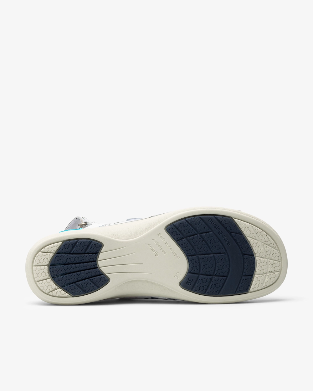 Nahasta tehty naistensandaali, jossa on vaihdettava, ergonominen pohjallinen. Terveydenhuollon ympäristöissä vaaditun hygienian ylläpitämiseksi sandaalit voidaan pestä koneessa max 30⁰C:ssa. Liukumaton ulkopohja, jossa takaa hyvän pidon, ja antistaattiset ominaisuudet, jotka suojaavat staattiselta sähköltä. Optimaalinen istuvuus voidaan varmistaa kolmella säädettävällä tarranauharemmillä, joista kaksi on yläosassa ja yksi takana.