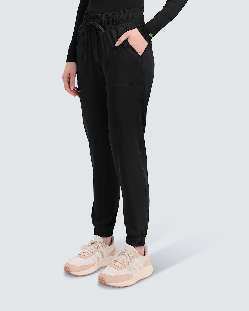 Joggerbukse med høy midje og avslappet passform som gir optimal bevegelsesfrihet i en krevende arbeidshverdag. Det funksjonelle stoffet med 4-veis stretch sammen med elastiske mansjetter og snøring i midjen sørger for en behagelig passform. Fem praktiske lommer foran, bak og på bena gir smart oppbevaring. Utstyrt med en holder til for eksempel briller.