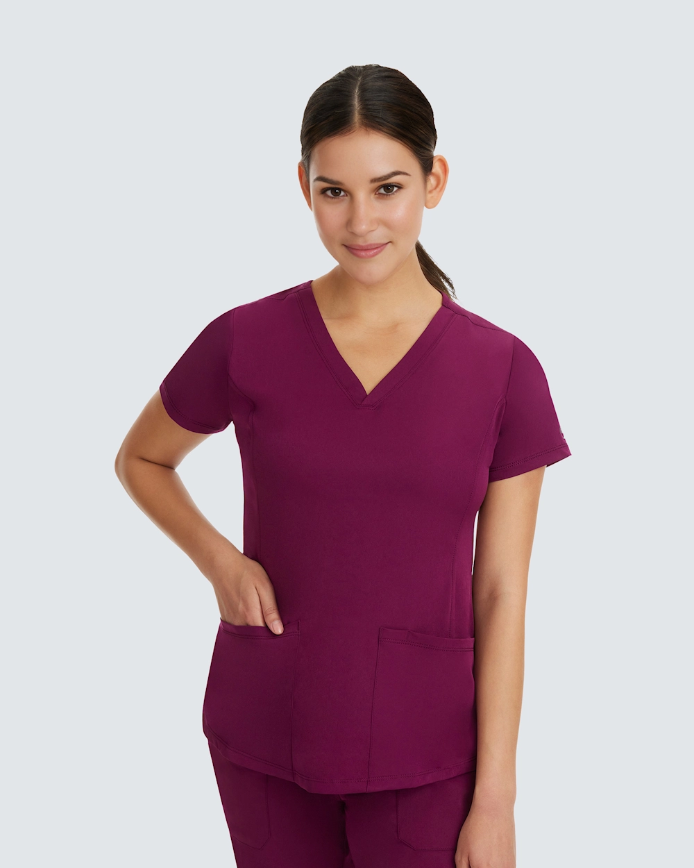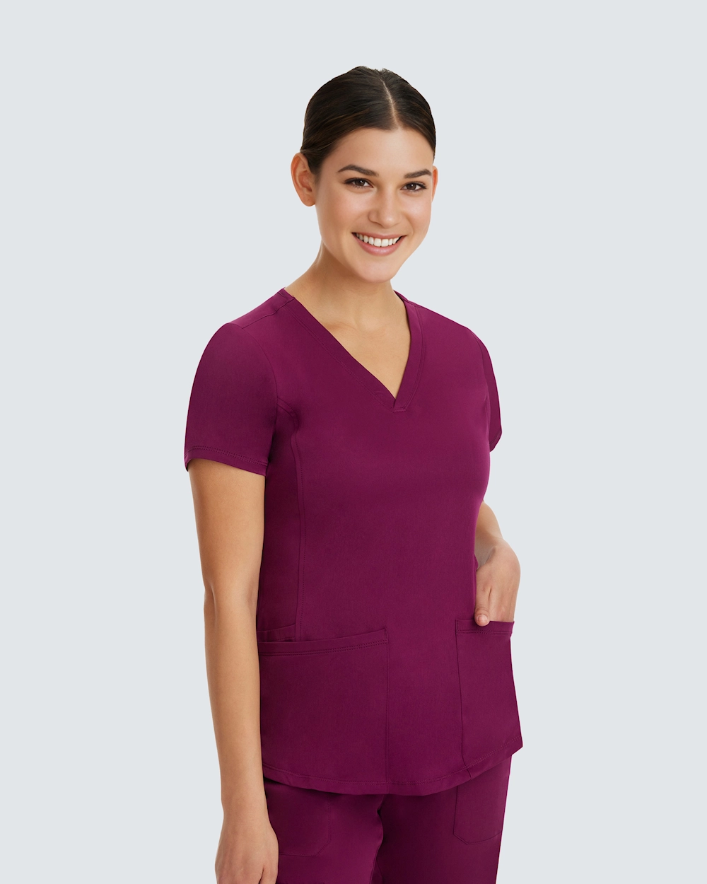Healing Handsin Monica-yläosa on suunniteltu yhdistämään tyyli ja toiminnallisuus, ja se tarjoaa miellyttävää mukavuutta koko työpäivän ajan. Tässä V-pääntieisessä yläosassa on moderni istuvuus ja edessä prinsessaleikkaus, joka luo imartelevan ja ammattimaisen siluetin.