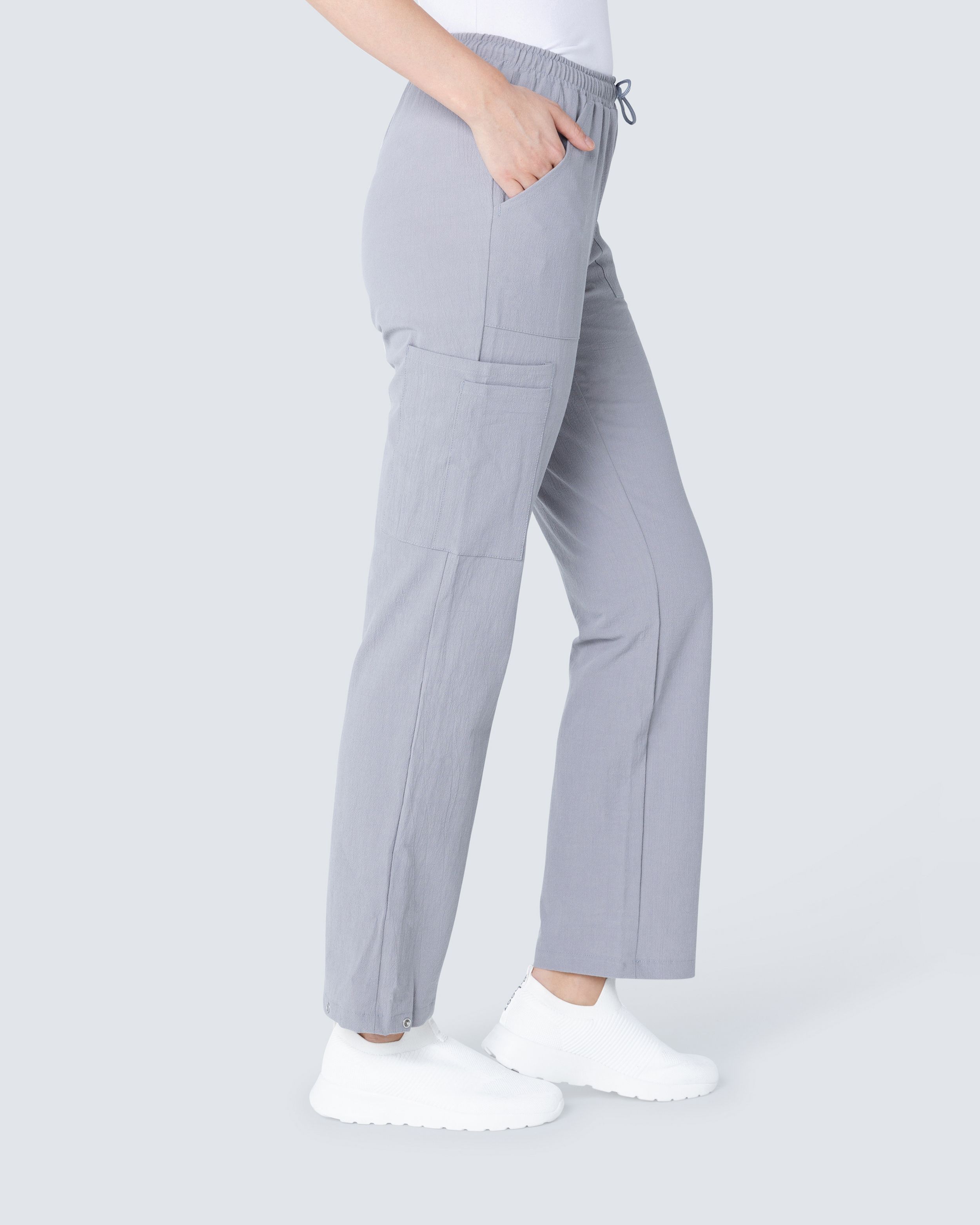 Hejcon Crinkle kokoelman Unisex-housut tilavassa muotoilussa. Jousto ja kiristysnauha vyötäröllä, säädettävä leveys alhaalla. Sivutaskut, jalkatasku ja puhelintasku. Avainsilmukka. Materiaali on OEKO-TEX-sertifioitu, mikä tarkoittaa, että se ei sisällä kemikaaleja terveydelle haitallisina pitoisuuksina.