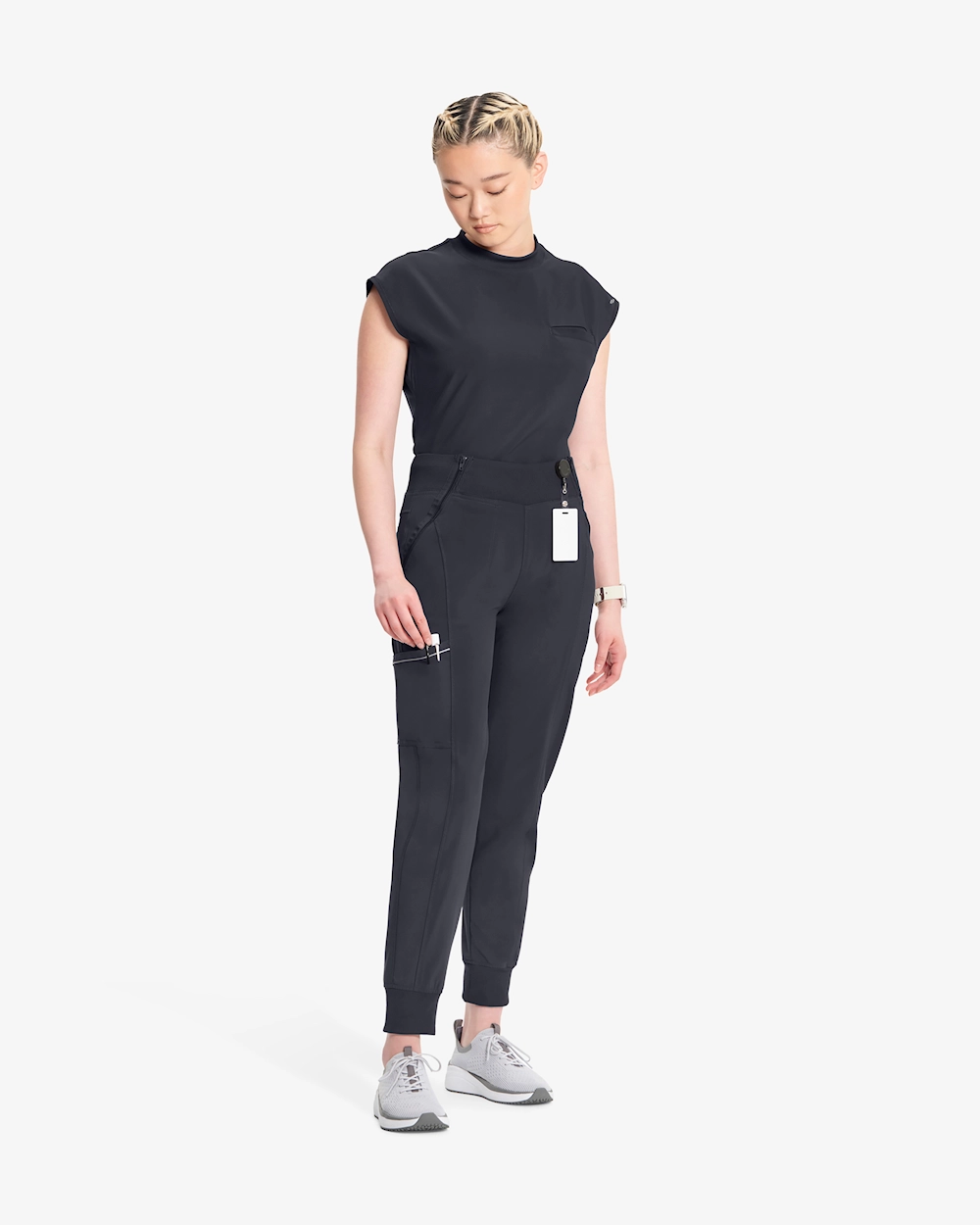 Lenkkihousut on suunniteltu terveydenhuollon ammattilaisille, jotka haluavat sekä mukavuutta että toiminnallisuutta. Keskivyötäröllä, kylkilistoitetulla joustavalla vyötärönauhalla ja säädettävällä lahkeen pituudella varustetut työhousut tarjoavat joustavan istuvuuden koko päiväksi. Varustettu useilla taskuilla, heijastinnauhalla lisänäkyvyyttä varten ja koristeompeleilla modernin ilmeen luomiseksi. Stretch-popliini ja erittäin joustava kylkineule yhdistyvät PROTX2-teknologiaan, joka siirtää tehokkaasti kosteutta ja hillitsee hajua.