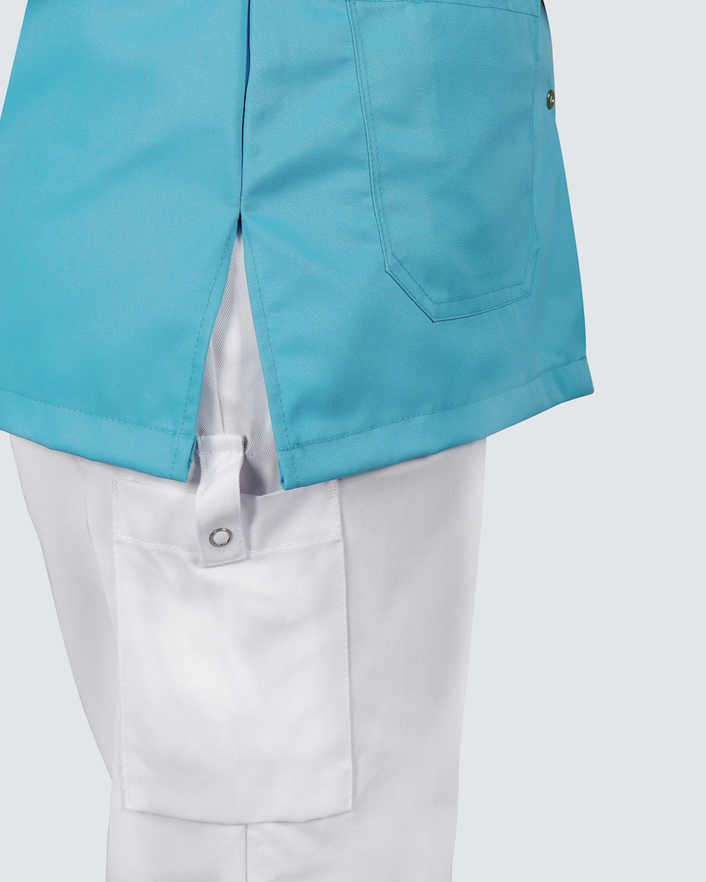 Naisten hoitotunika kevyellä kavennuksella. Käytännöllinen sulkeminen painonapeilla, mikä tekee tunikasta käytännöllisen ammatteissa, joissa likaantuu eikä halua vetää vaatetta pään yli. Tunika on valmistettu ympäristöystävällisestä Tencelistä, joka tarjoaa erittäin mukavan tunteen ja hyvän hengittävyyden.