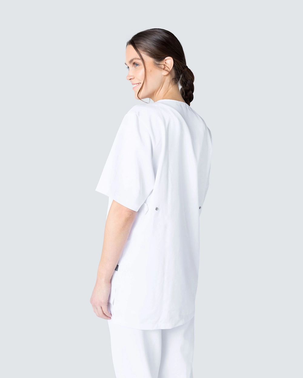 Klassinen pusero ympäristöystävällisestä Tencelistä, joka antaa viileän ja mukavan tunteen keholle. Pusero on ommeltu suorassa unisex-mallissa. Takana olevilla painonapeilla voit säätää vyötäröä ja saada täydellisen istuvuuden.