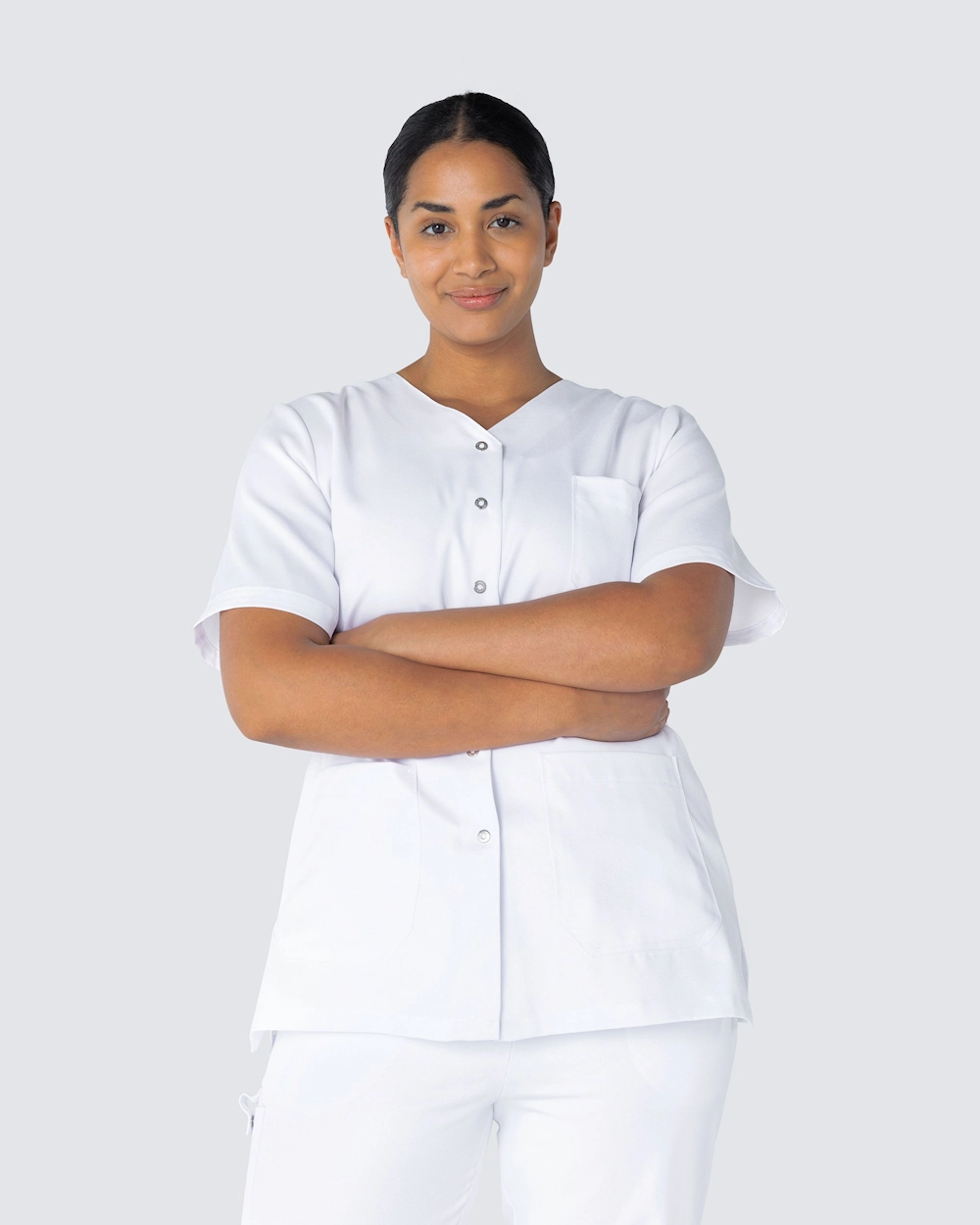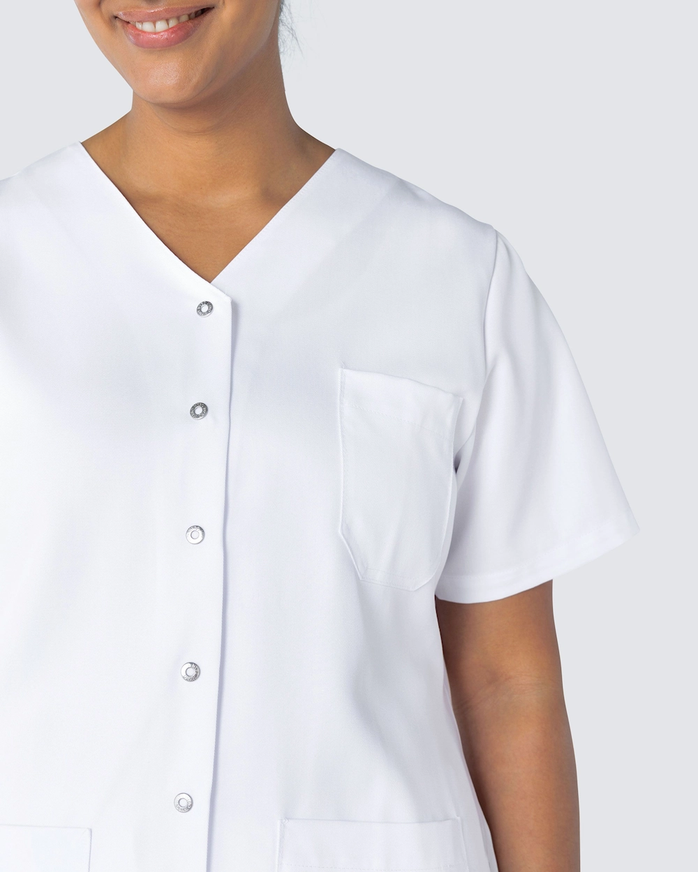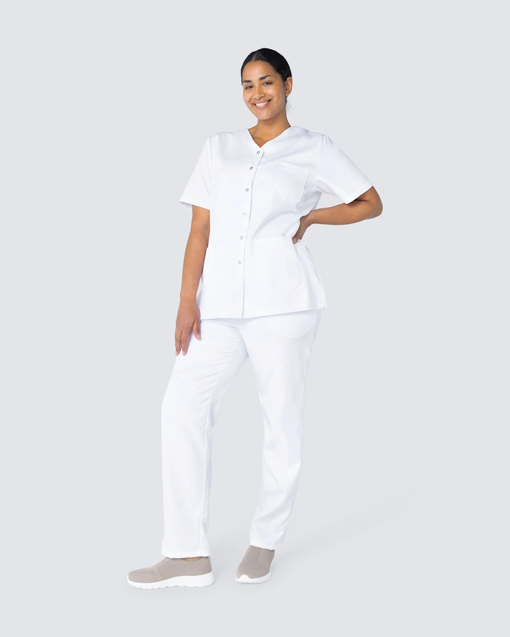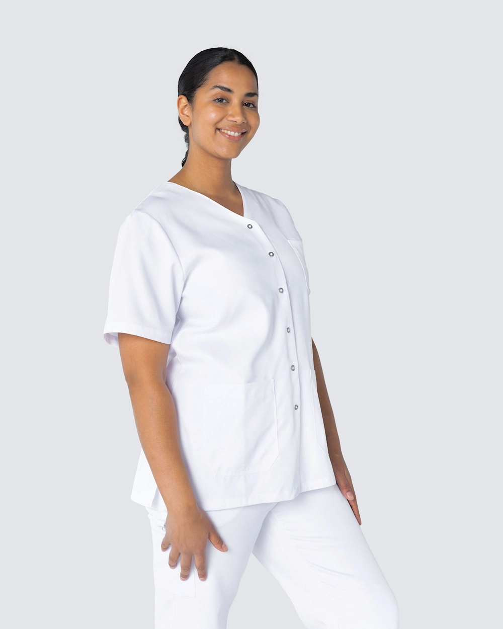 Naisten hoitotunika kevyellä kavennuksella. Käytännöllinen sulkeminen painonapeilla, mikä tekee tunikasta käytännöllisen ammatteissa, joissa likaantuu eikä halua vetää vaatetta pään yli. Tunika on valmistettu ympäristöystävällisestä Tencelistä, joka tarjoaa erittäin mukavan tunteen ja hyvän hengittävyyden.
