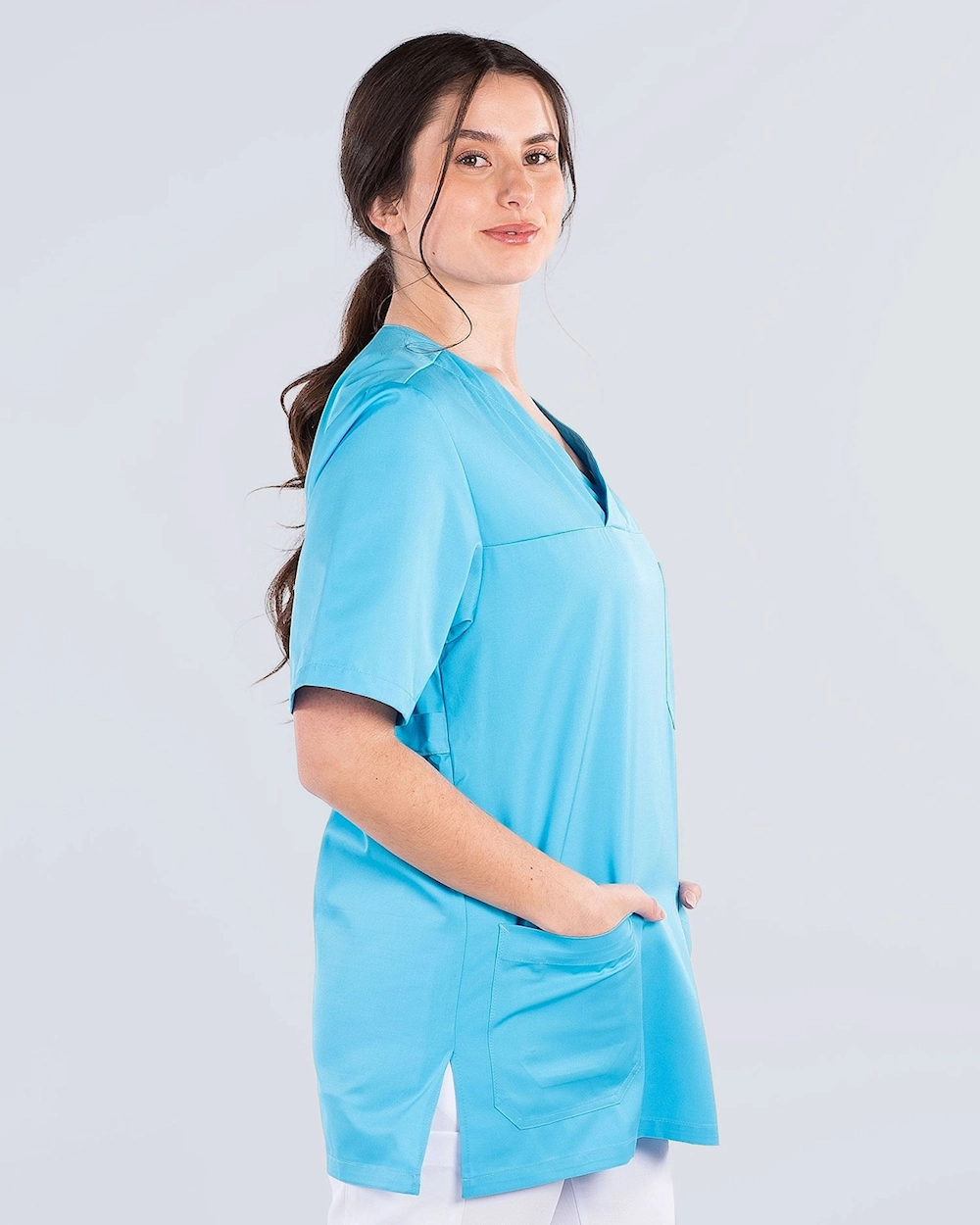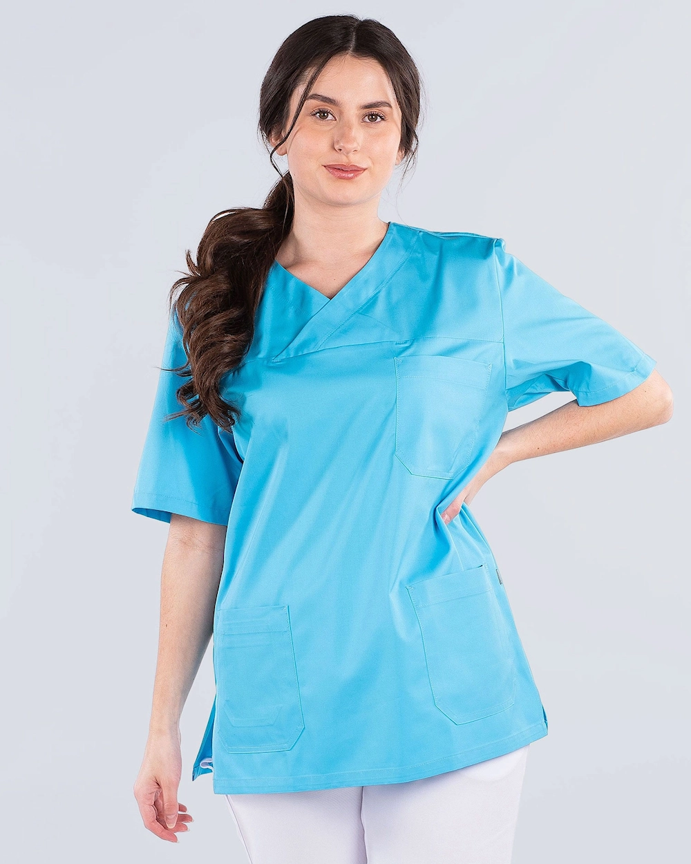 Käytännöllinen hoitopusero mukavasta materiaalista ja useilla kätevillä yksityiskohdilla. Pusero on valmistettu suorassa unisex-mallissa, ja siinä on myös säädettävä vyötärö, jotta voit säätää puseron istuvuutta joustonauhalla ja napeilla. Puserossa on sivuhalkiot optimaalisen mukavuuden ja liikkumisvapauden takaamiseksi sekä tilavat taskut, joissa on sekä puhelintaskut että avainlenkit.
