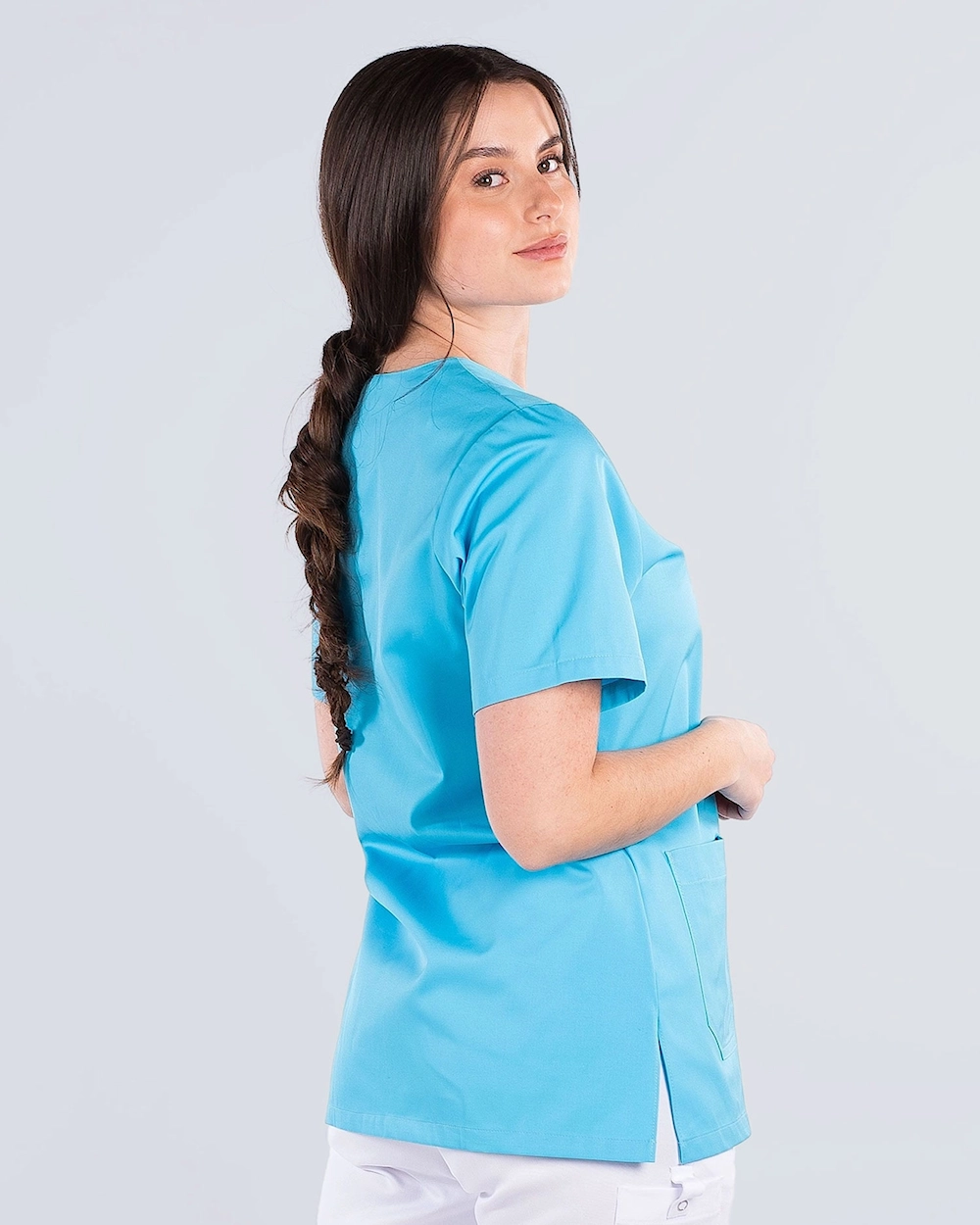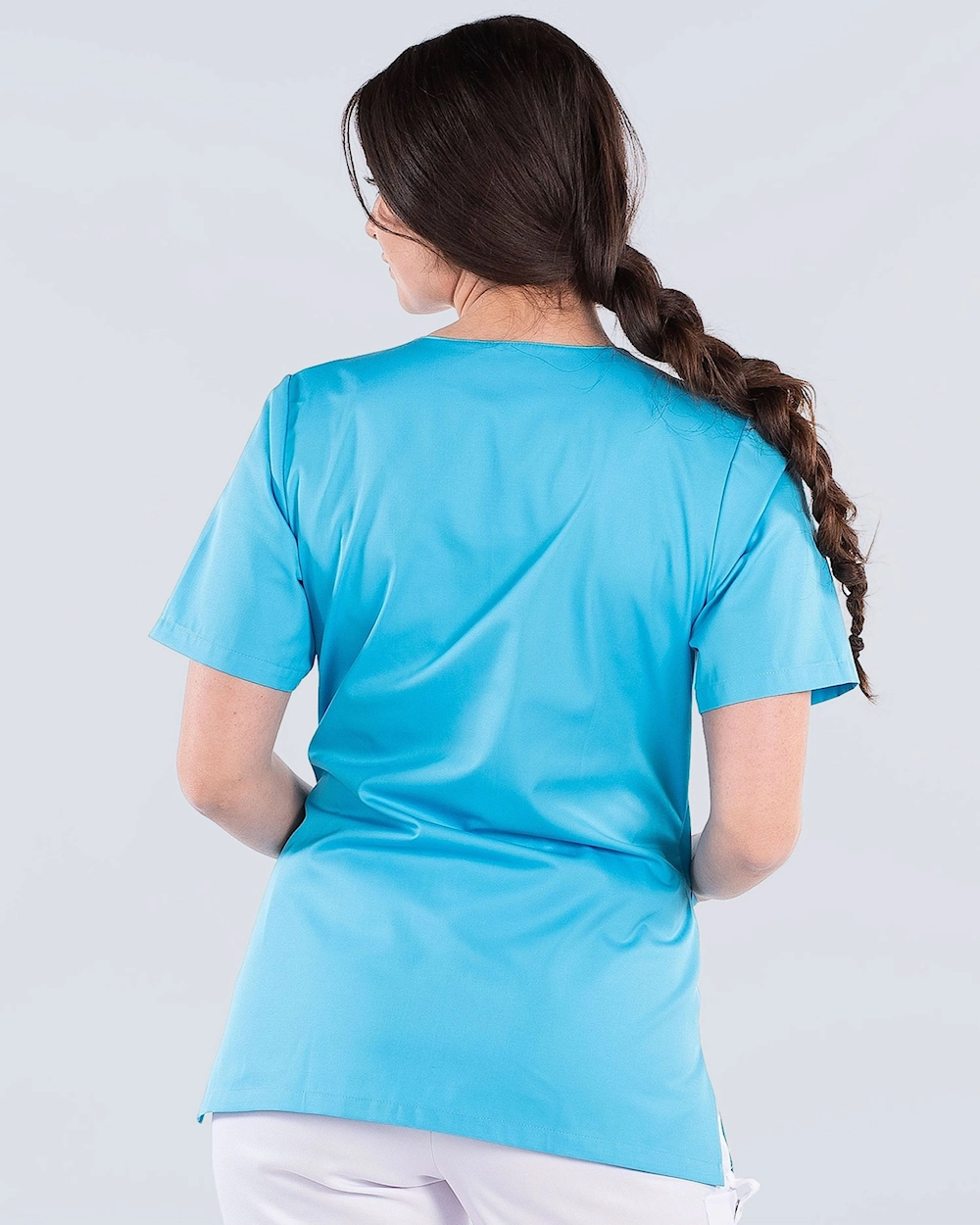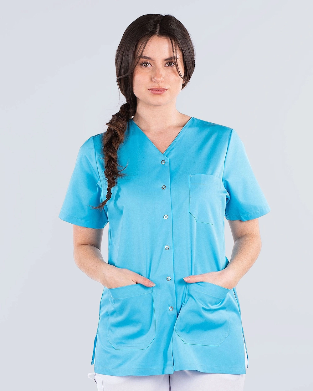 Hoitotunika, jossa käytännölliset painonapit ja koristeellinen v-pääntie. Tunika on kevyesti kavennettu mukavan istuvuuden saavuttamiseksi. Sivuhalkioiden ansiosta saat runsaasti liikkumavaraa. Tilava rintatasku sekä lonkkataskut puhelintaskulla ja avaimenpidikkeellä tarjoavat runsaasti säilytysmahdollisuuksia.