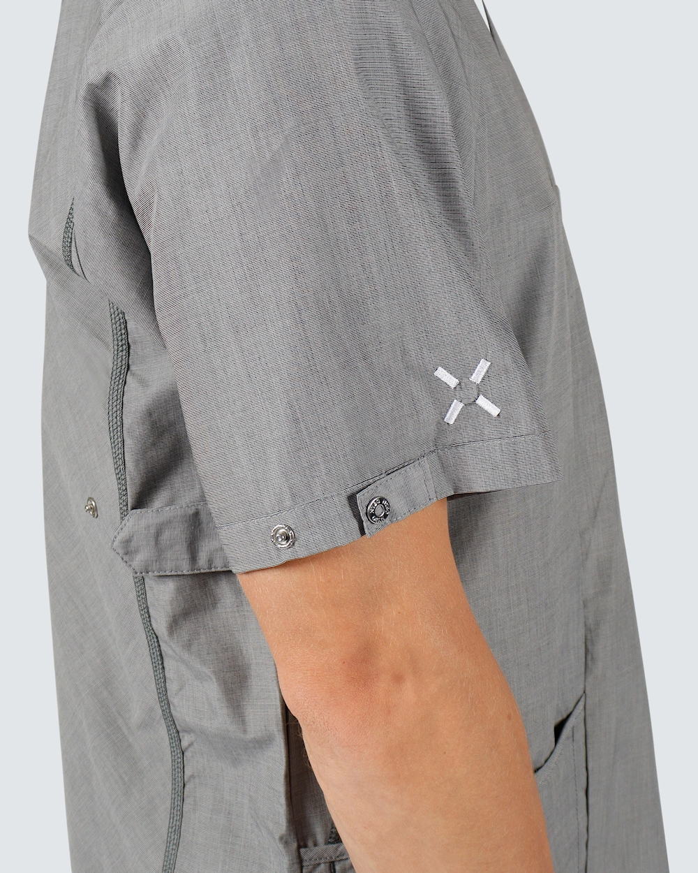 Unisex-mallinen, urheilullinen bussarongi, jossa on pyöreä V-pääntie ja joustava selkäosa. Vaatteessa on käytännöllinen nepparikiinnitys, kaksi tilavaa lantiotaskua ja rintatasku säilytystä varten.