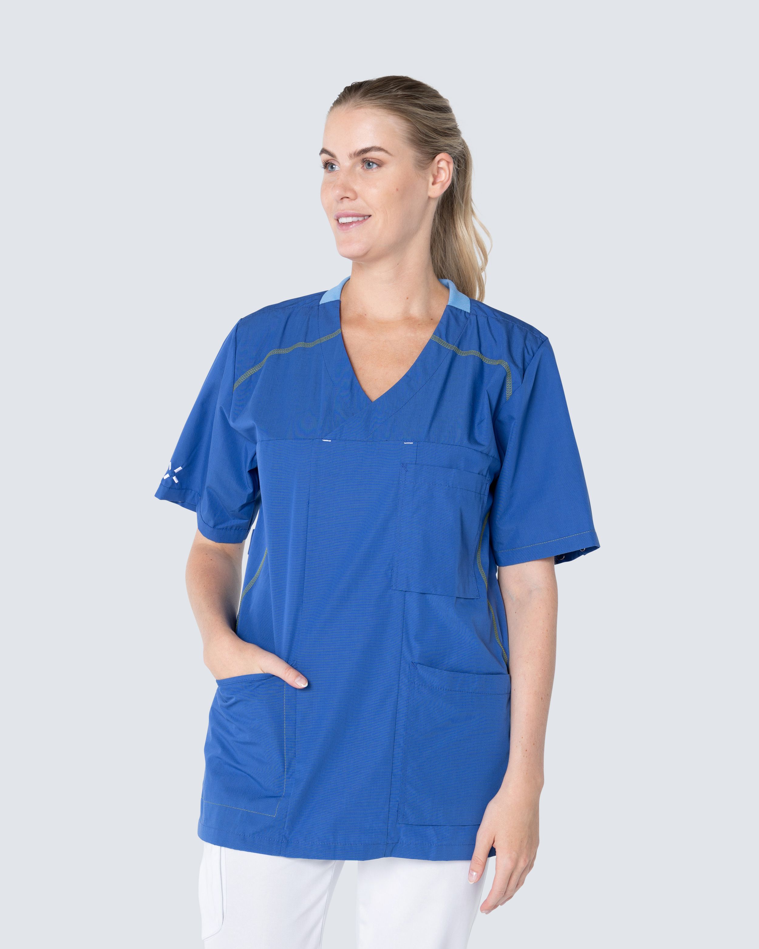 Sporty on hoitoalan bussarongeista, paidoista ja liiveistä koostuva mallisto, joka on saanut inspiraationsa moderneista juoksuvaatteista. Vaatteet on suunniteltu väljästi istuviksi ja niissä on urheilulliset kontrastiväriset linjat, jotka antavat tyylikkään ilmeen. Sporty-malliston vaatteita on saatavilla kuudessa tyylikkäässä värissä ja ne voidaan pestä 75°C:ssa.