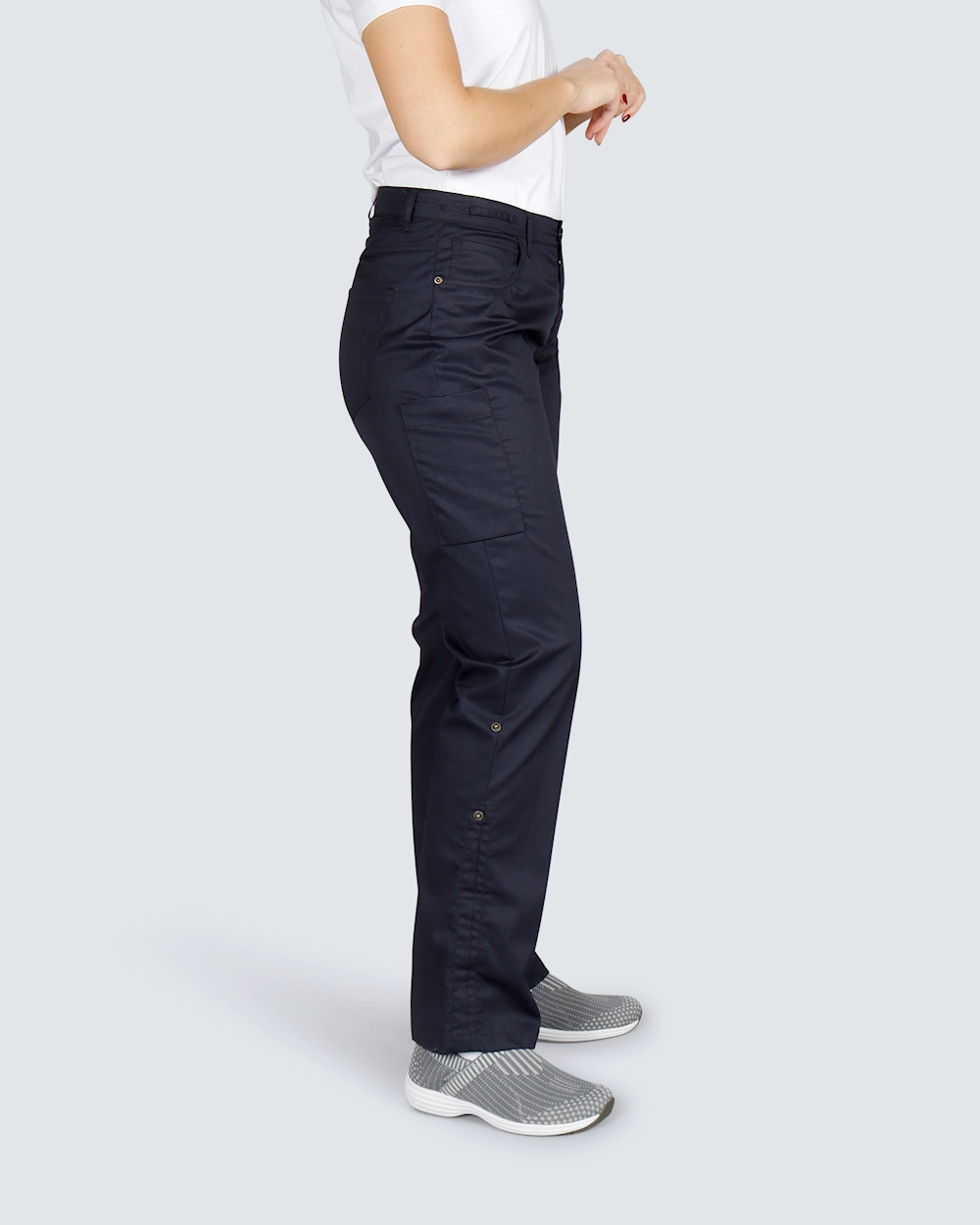 Näissä naisten joustavissa farkuissa yhdistyvät klassinen muotoilu ja moderni toiminnallisuus - täydelliset terveydenhuollon ammattilaisille, jotka etsivät mukavuutta ja liikkumisen vapautta. Kestävän ja joustavan istuvuuden, pehmeän kankaan ja hyvin tehtyjen yksityiskohtien ansiosta housut ovat mukavat koko päivän. Kangas on erityisesti sovitettu teollisuuspesuun, ja se säilyttää sekä värin että joustavuuden. Sopii täydellisesti kaikille vartalotyypeille.