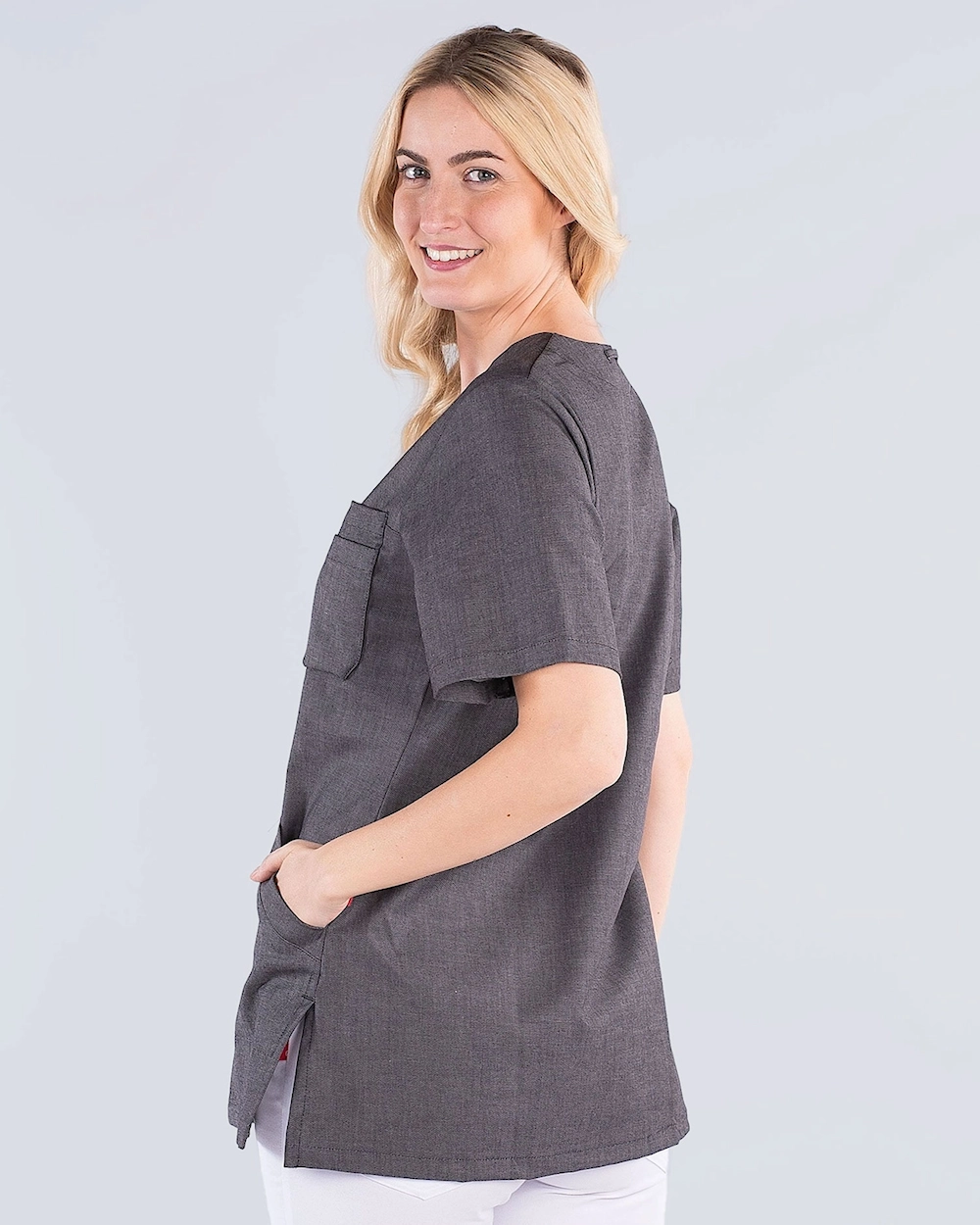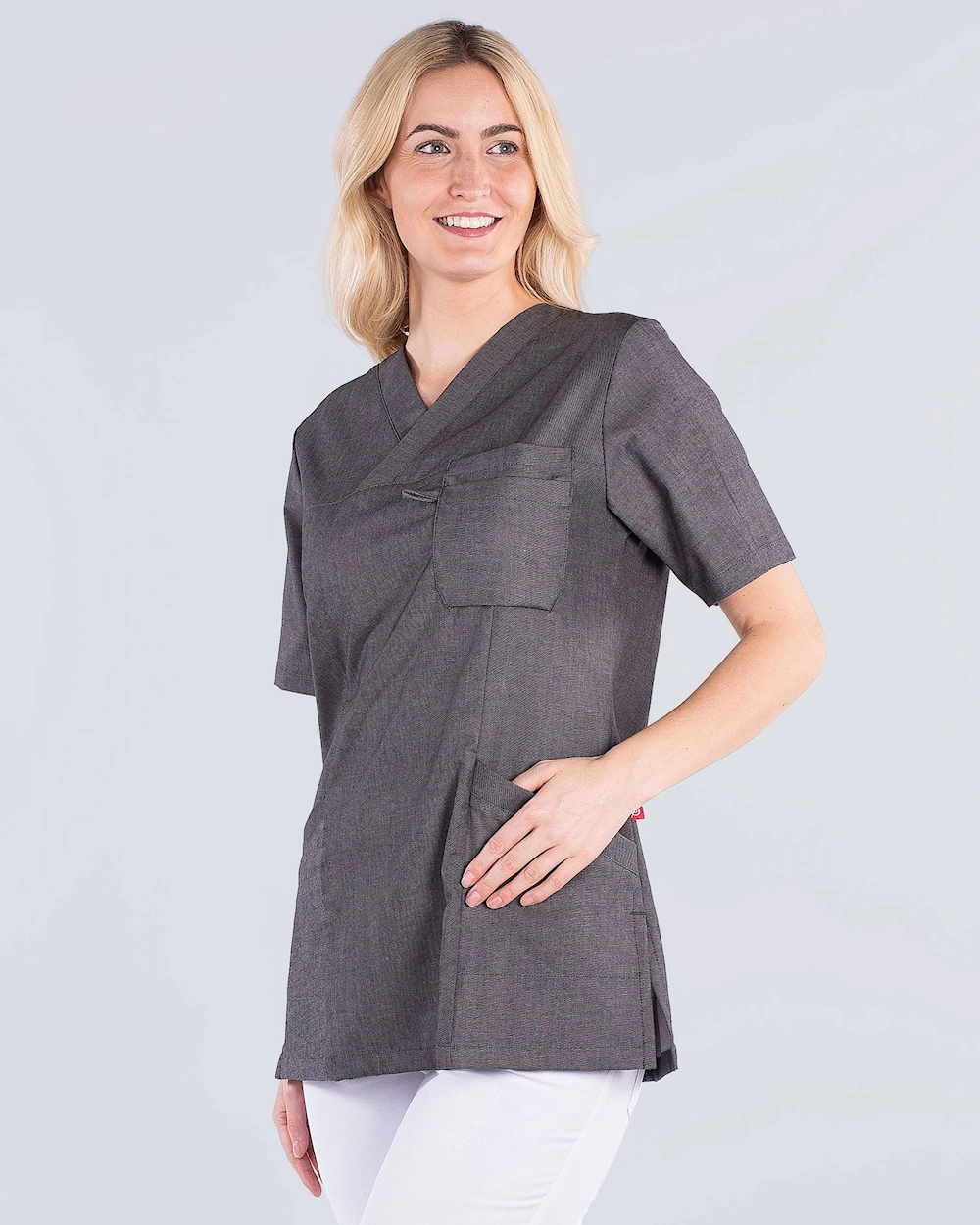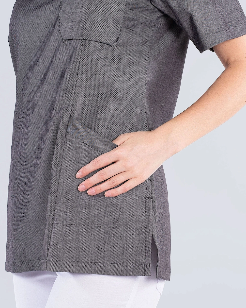 XLA stretch-materiaalista valmistettu tunika, jossa on runsaasti liikkumavaraa. Tunika on a-linjamuotoinen mukavan istuvuuden takaamiseksi. Kaksi sivutaskua ja rintatasku tarjoavat runsaasti tilaa erilaisille työvälineille, kynille ja muistilehtiöille.