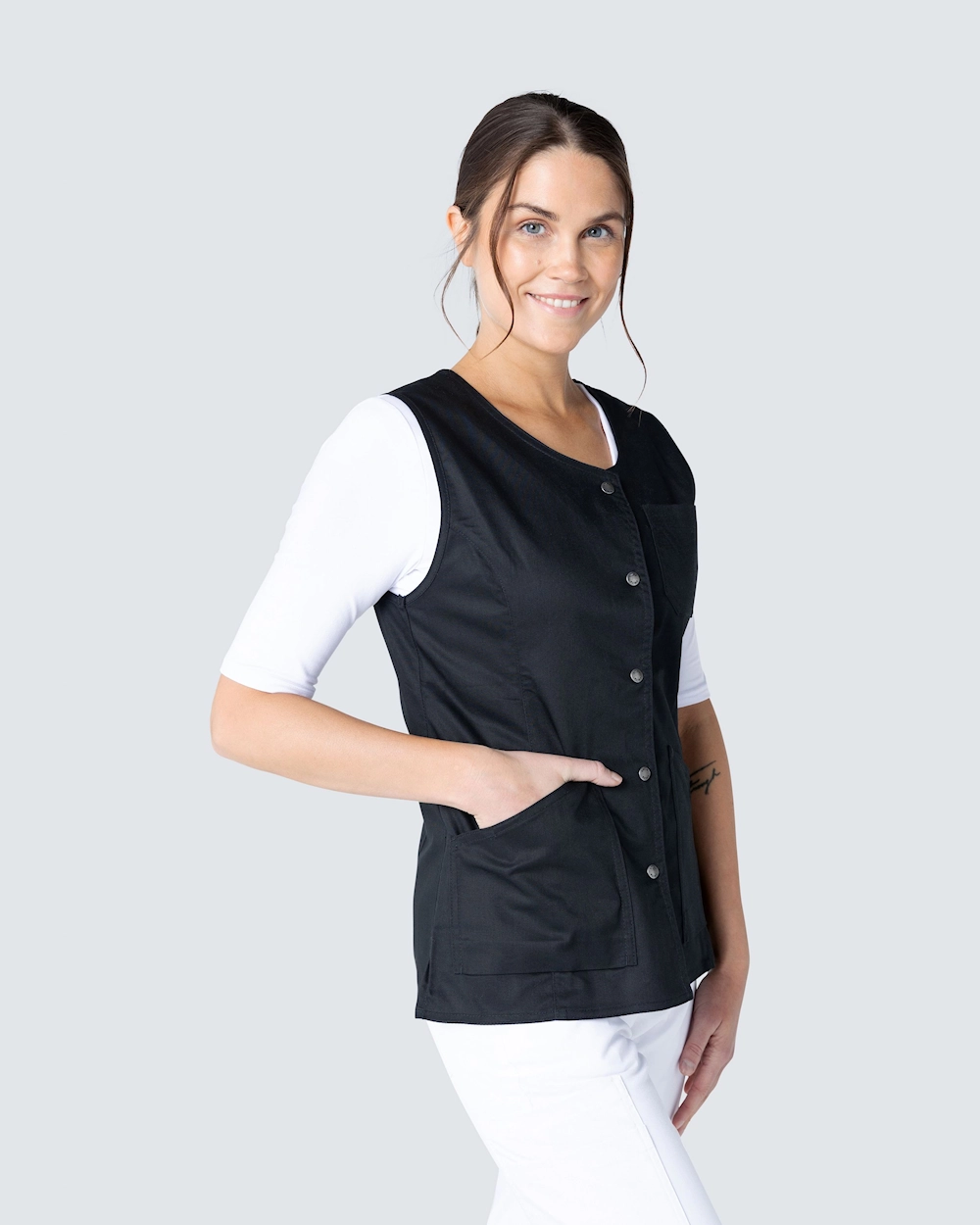 Tässä South Westn työliivissä on hieman kaareva vyötärö, joka antaa mukavan istuvuuden ja siluetin. Liivissä on tilavat taskut, sekä rintatasku että kaksi etutaskua. Sivuhalkion ansiosta saat hyvän istuvuuden.