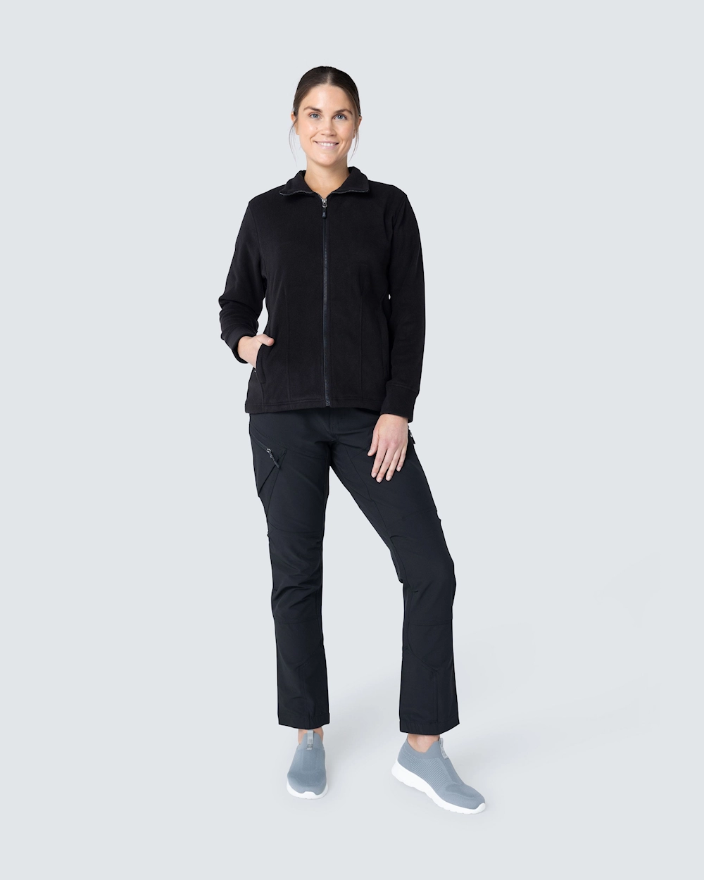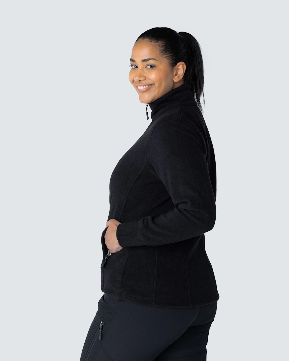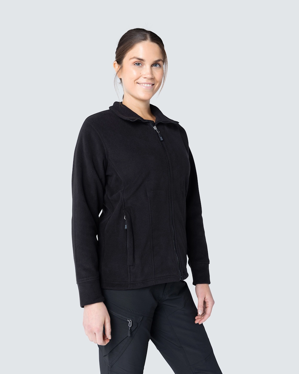 Naisten istuva fleecetakki. Helmassa nyöri ja edessä kaksi vetoketjutaskua. Antipilling-käsitelty nyppyyntymisen ehkäisemiseksi.
