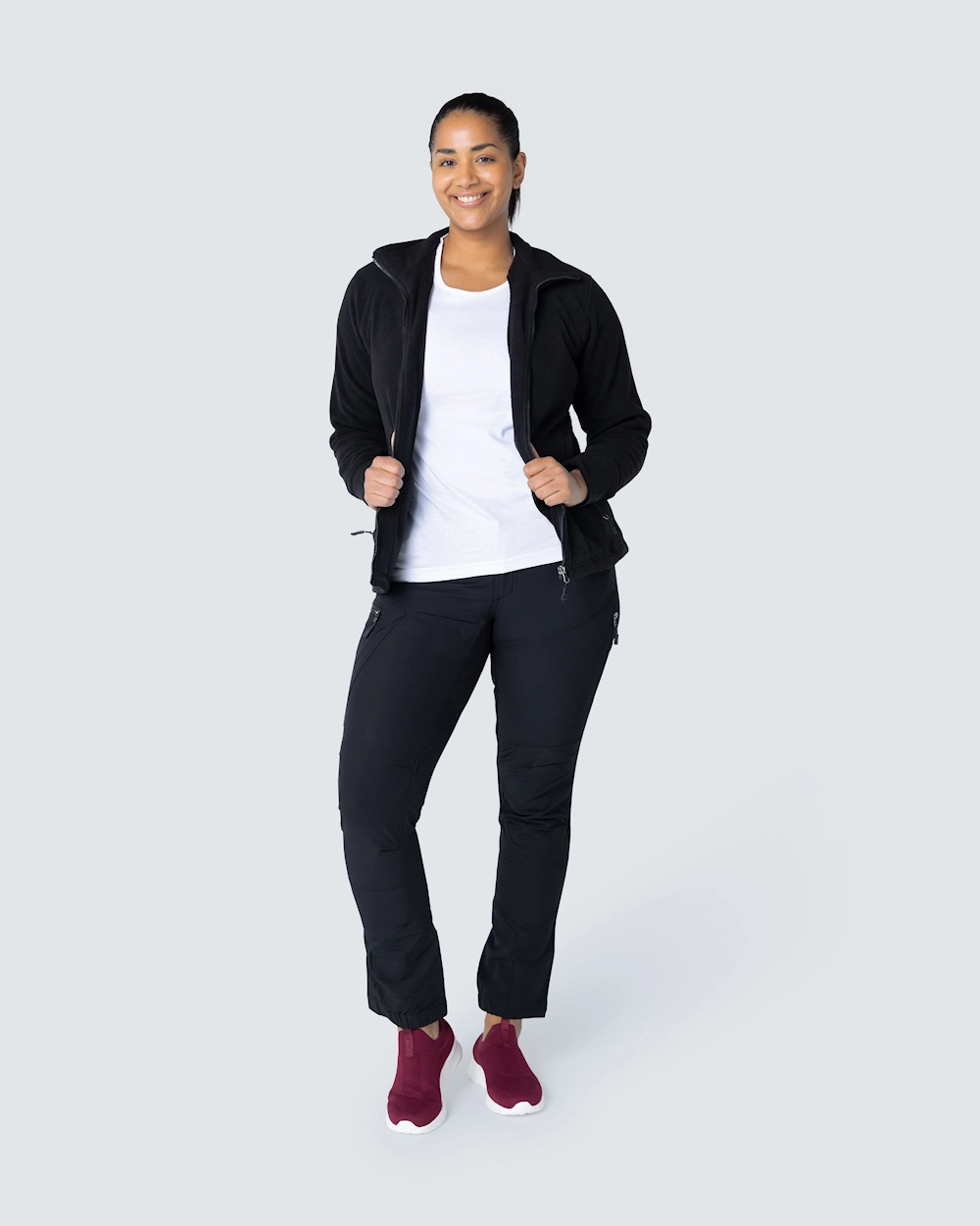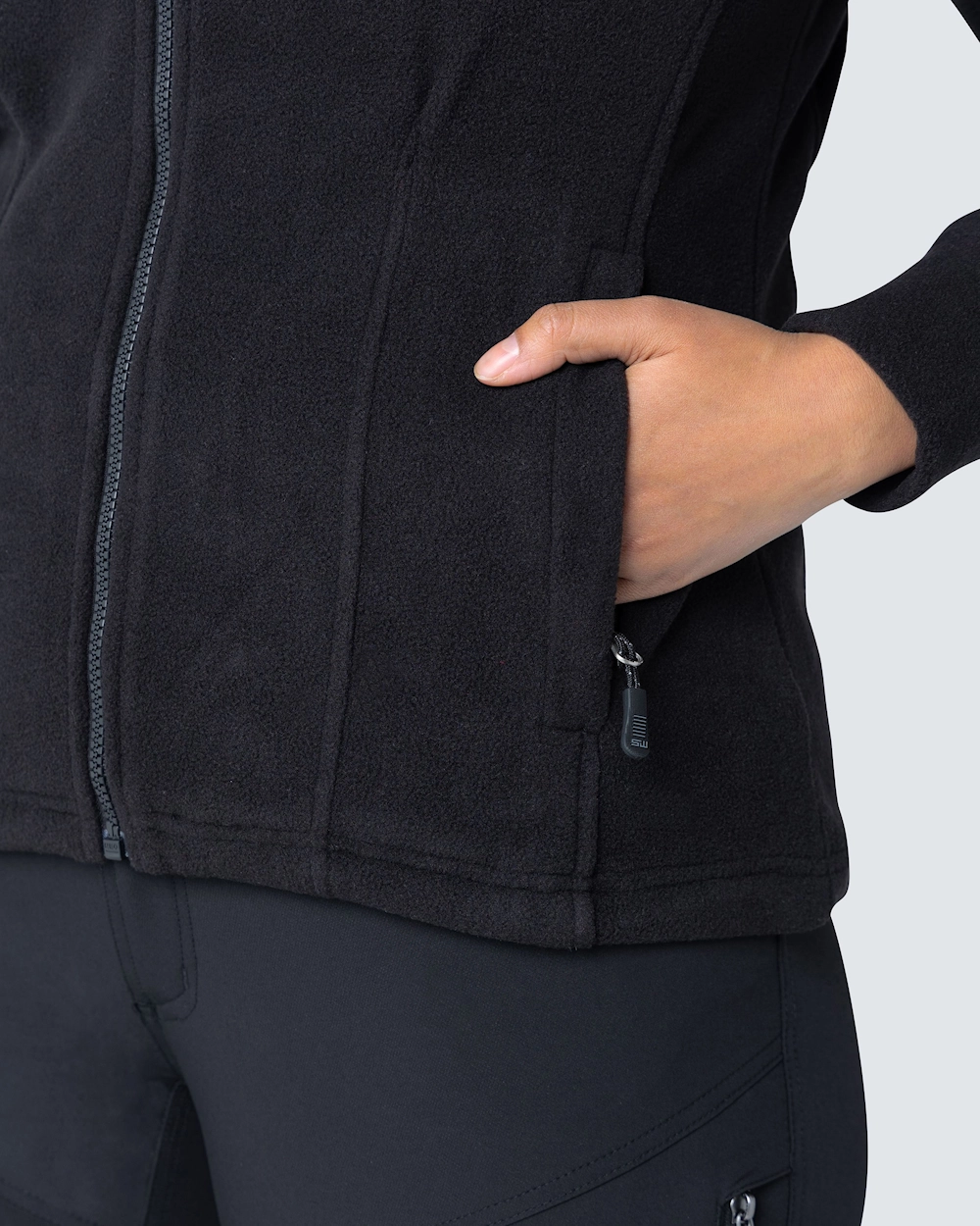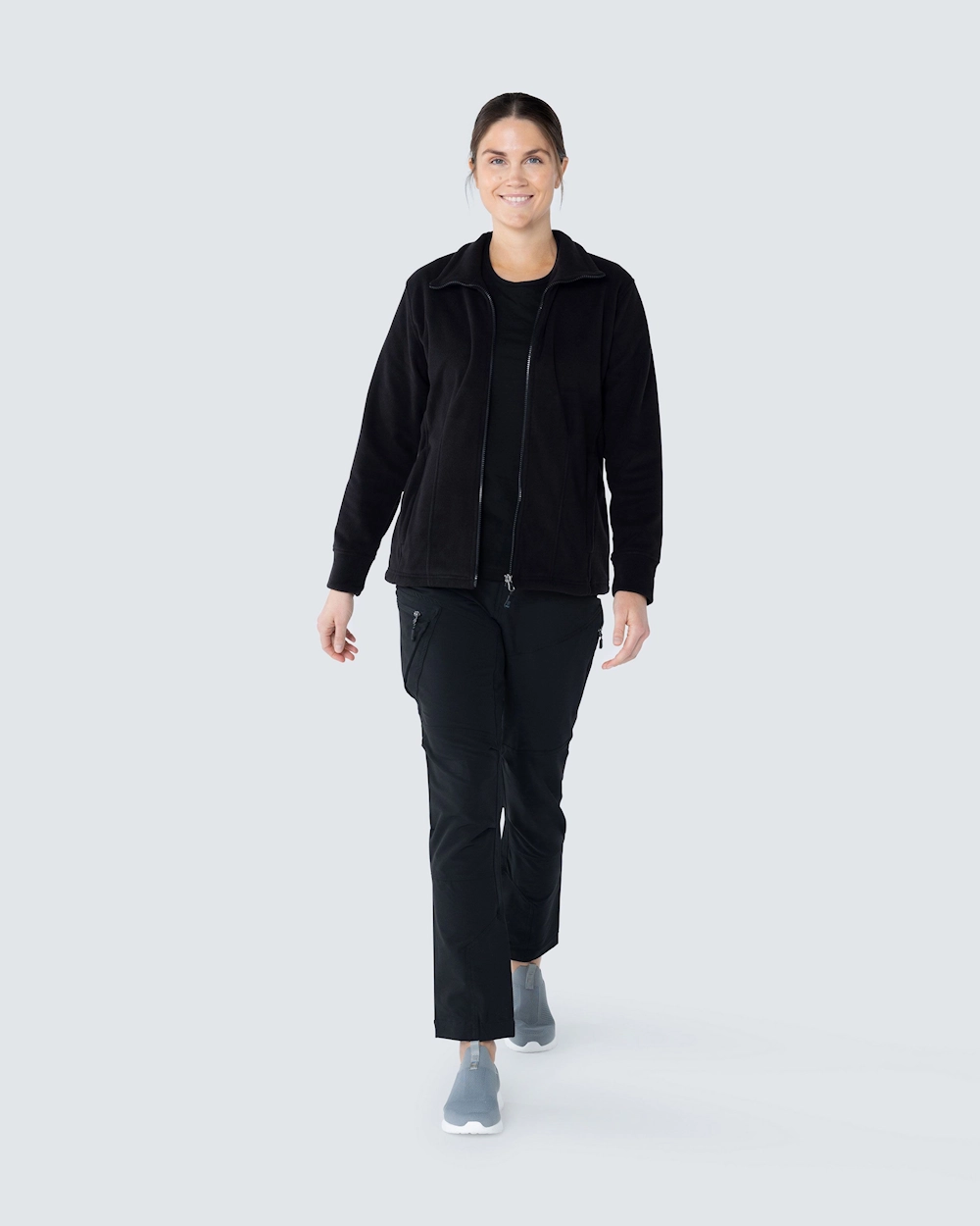 Naisten istuva fleecetakki. Helmassa nyöri ja edessä kaksi vetoketjutaskua. Antipilling-käsitelty nyppyyntymisen ehkäisemiseksi.