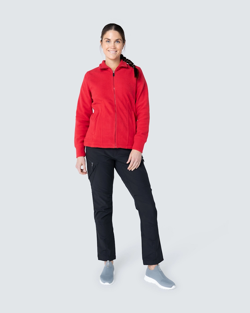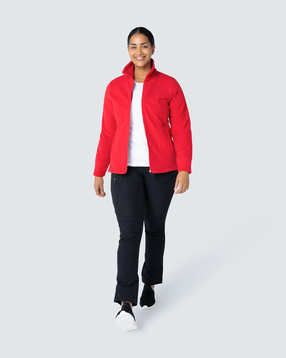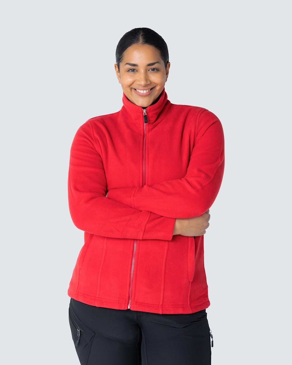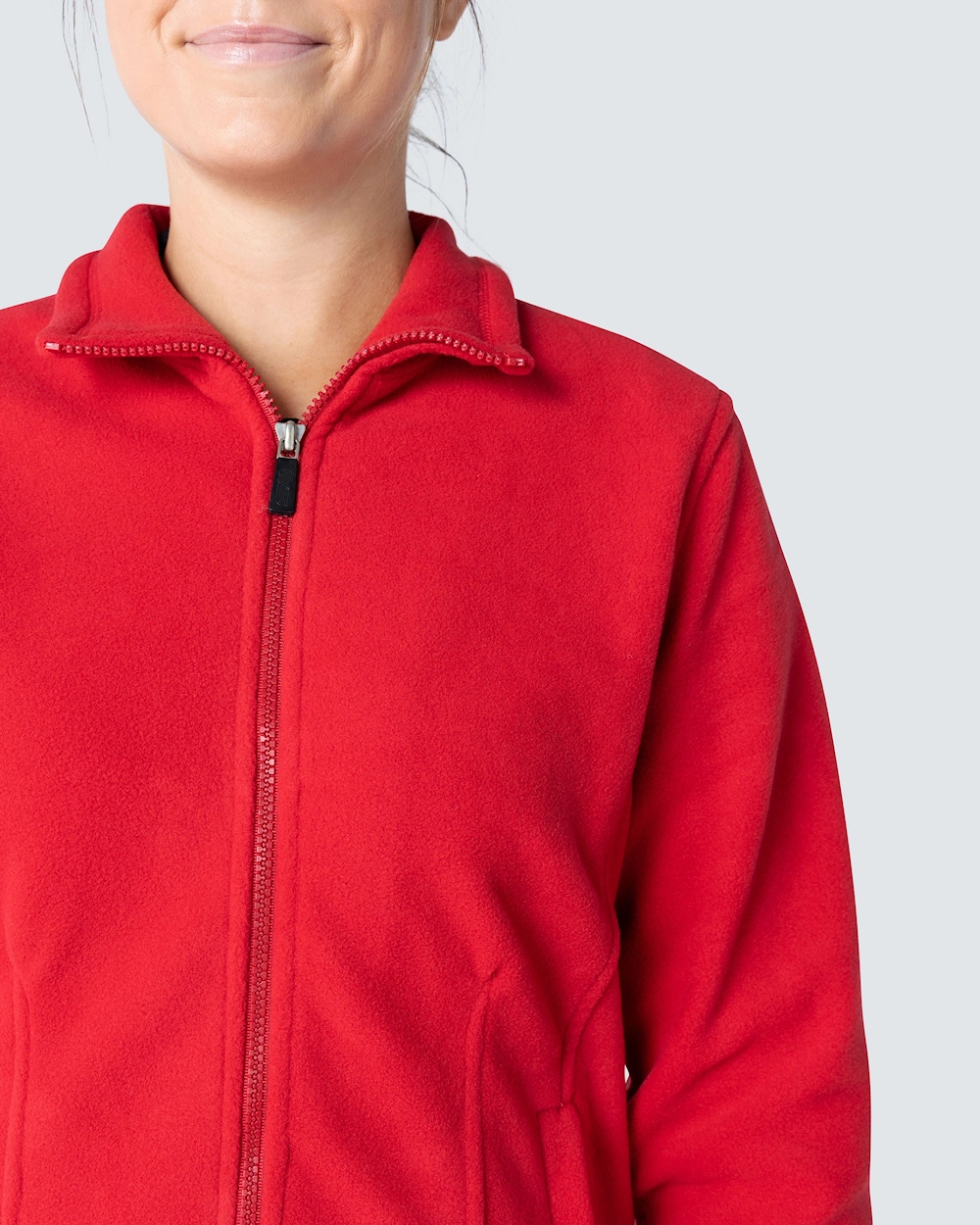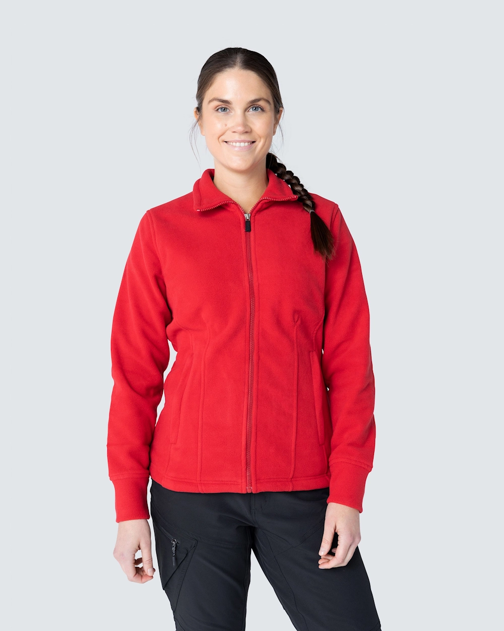 Naisten istuva fleecetakki. Helmassa nyöri ja edessä kaksi vetoketjutaskua. Antipilling-käsitelty nyppyyntymisen ehkäisemiseksi.