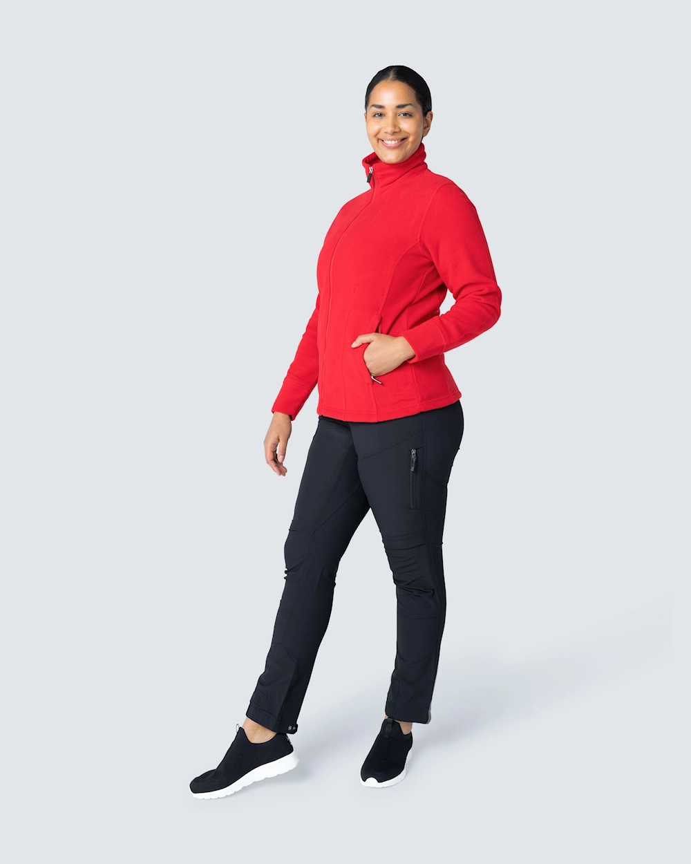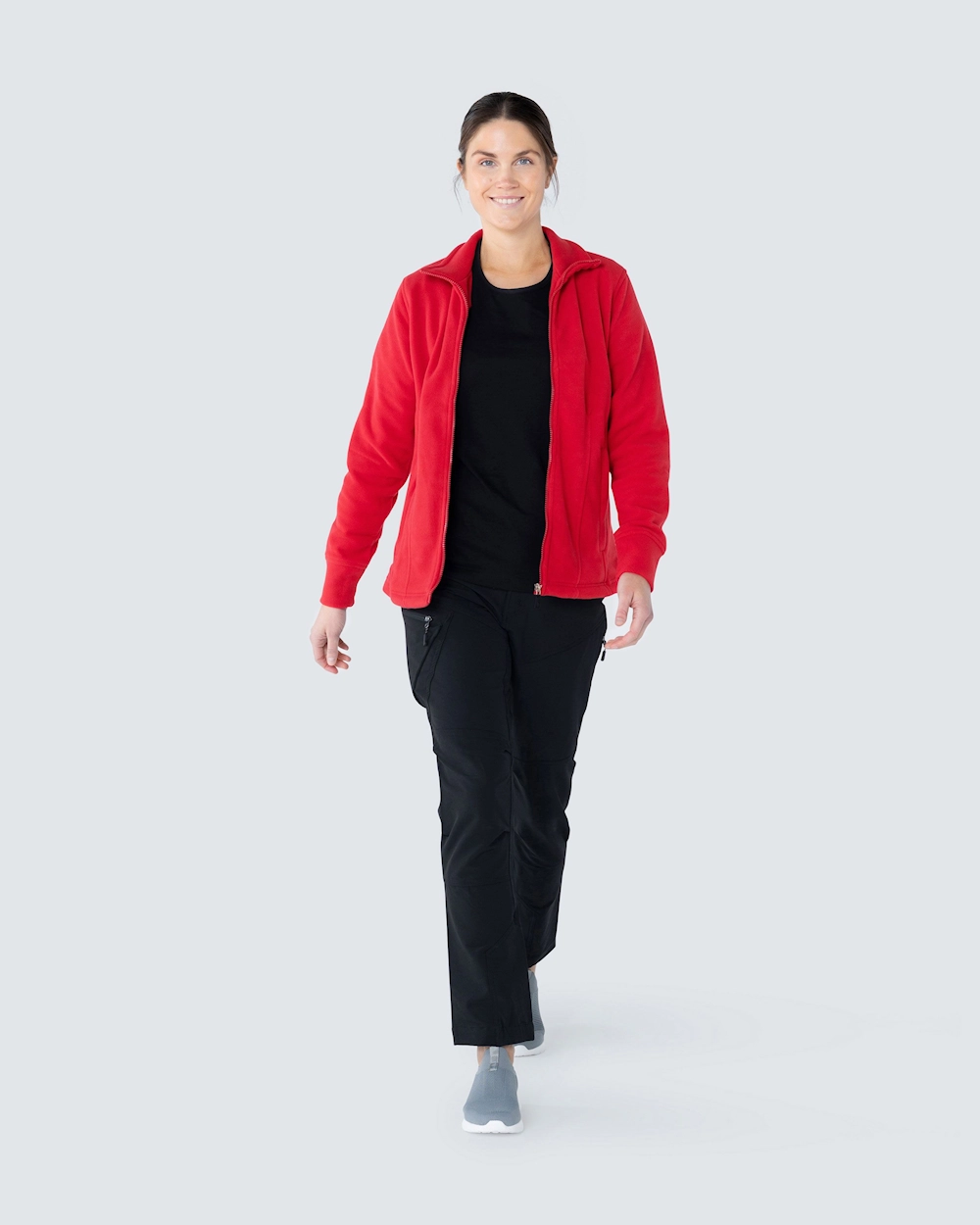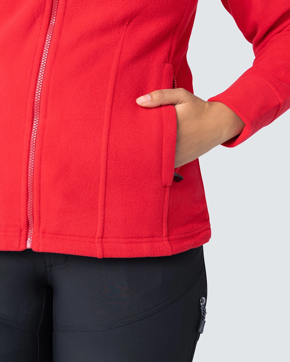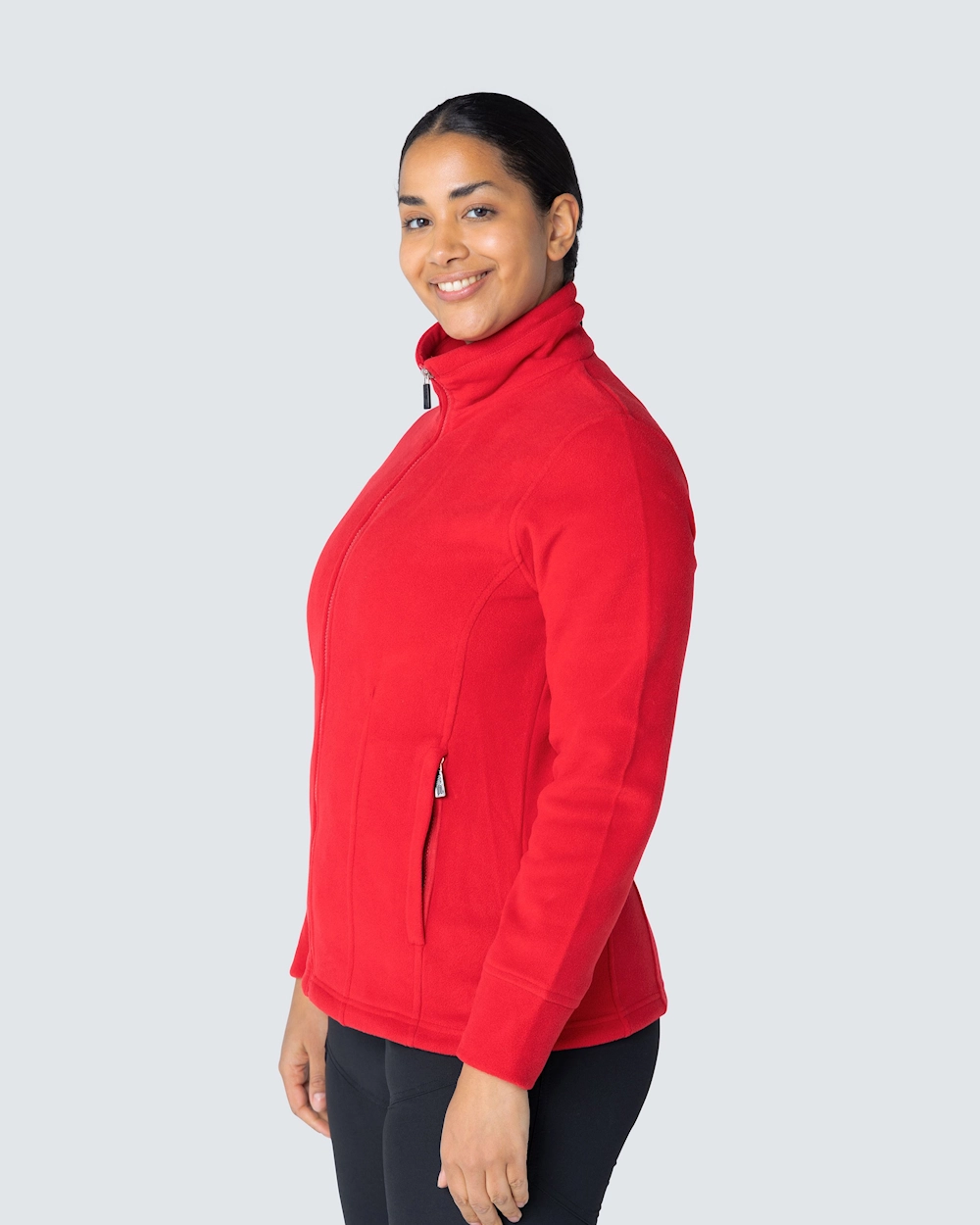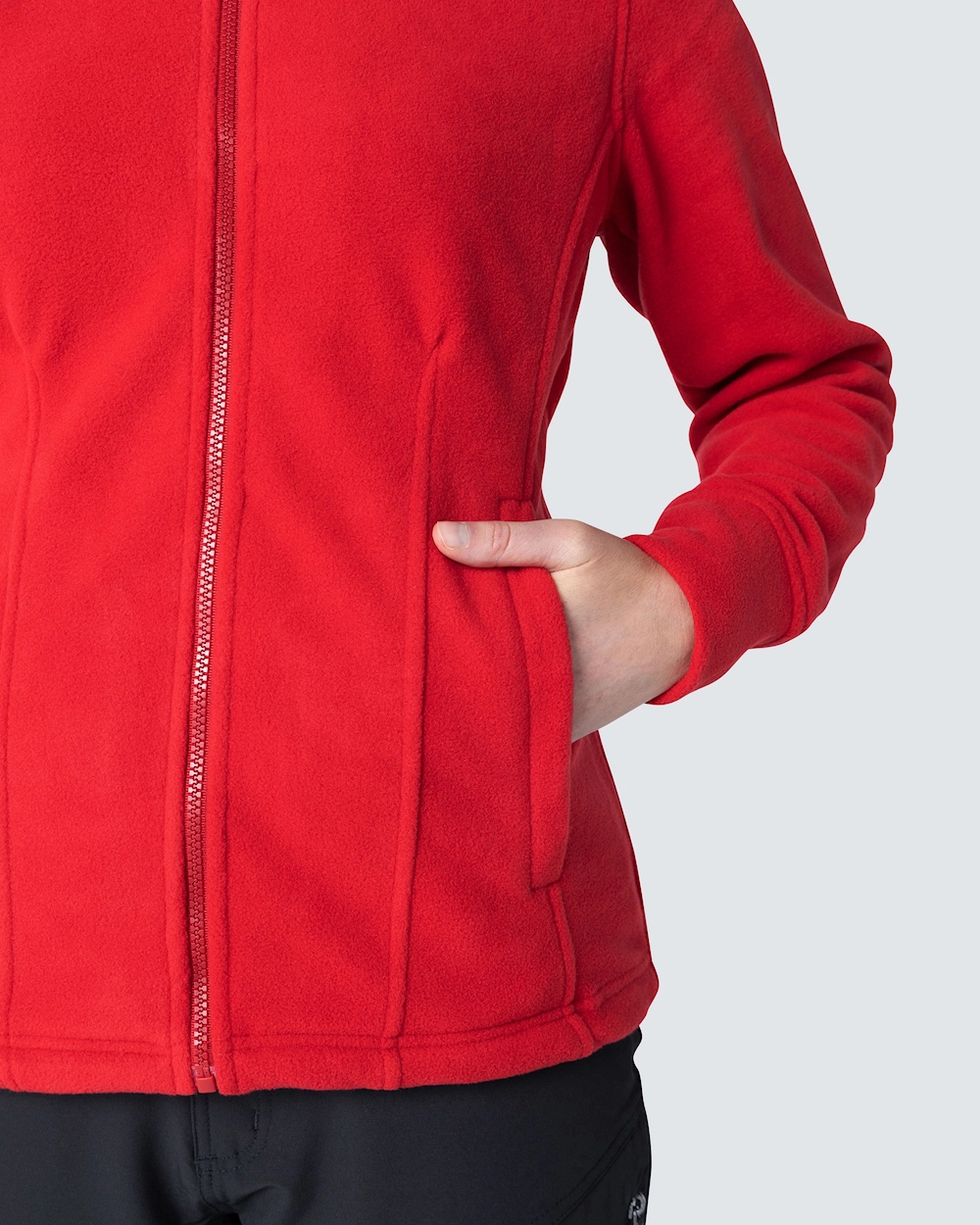 Naisten istuva fleecetakki. Helmassa nyöri ja edessä kaksi vetoketjutaskua. Antipilling-käsitelty nyppyyntymisen ehkäisemiseksi.