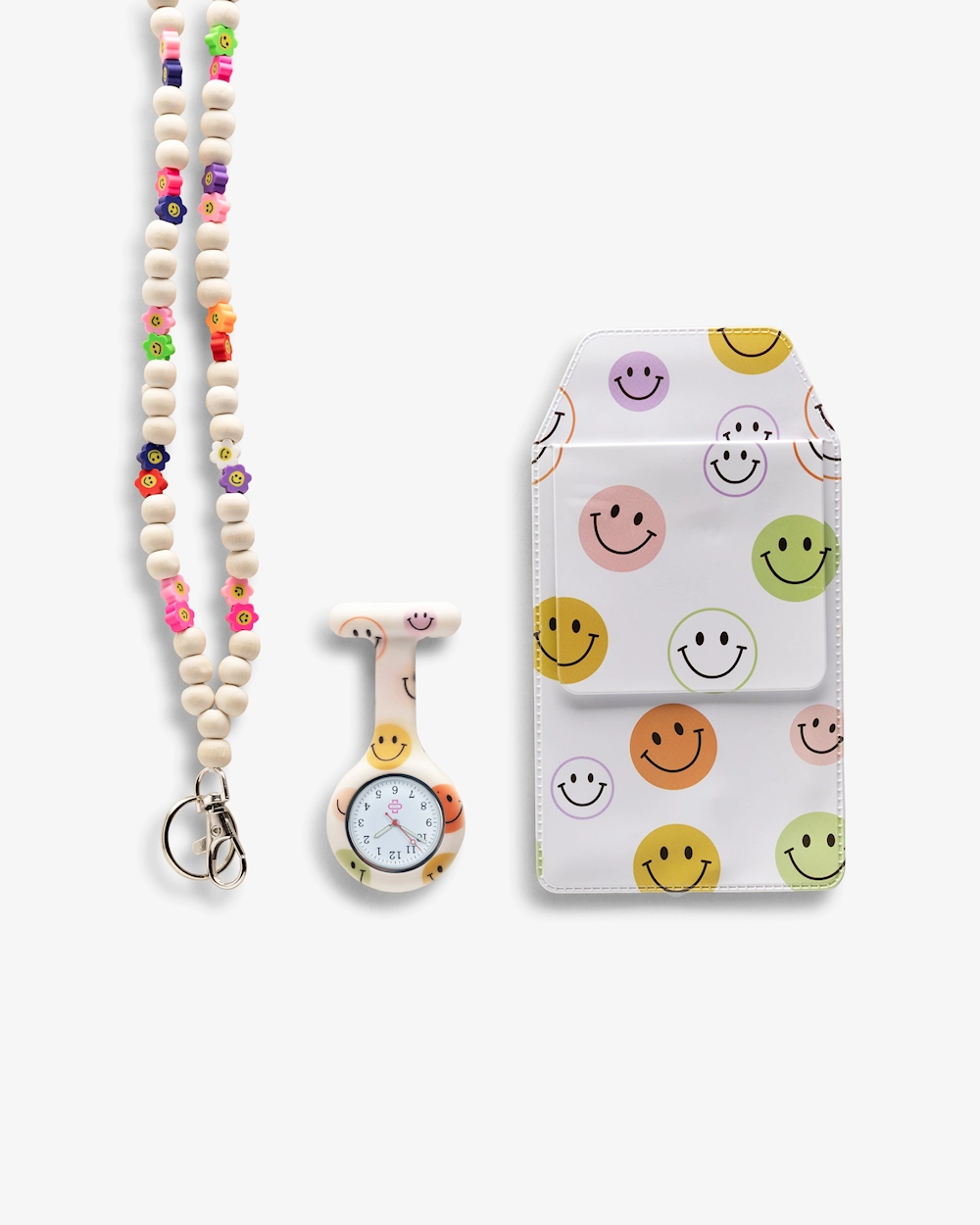 Levitä iloa ja energiaa Työtarvikesetti Happy -setillämme! Tämä setti on täydellinen sinulle, joka haluat lisätä värikkään ja leikkisän kosketuksen työasuusi. Setti sisältää tärkeimmät tarvikkeet iloisessa ja pirskahtelevassa designissa, jota sekä kollegat että potilaat varmasti arvostavat.
