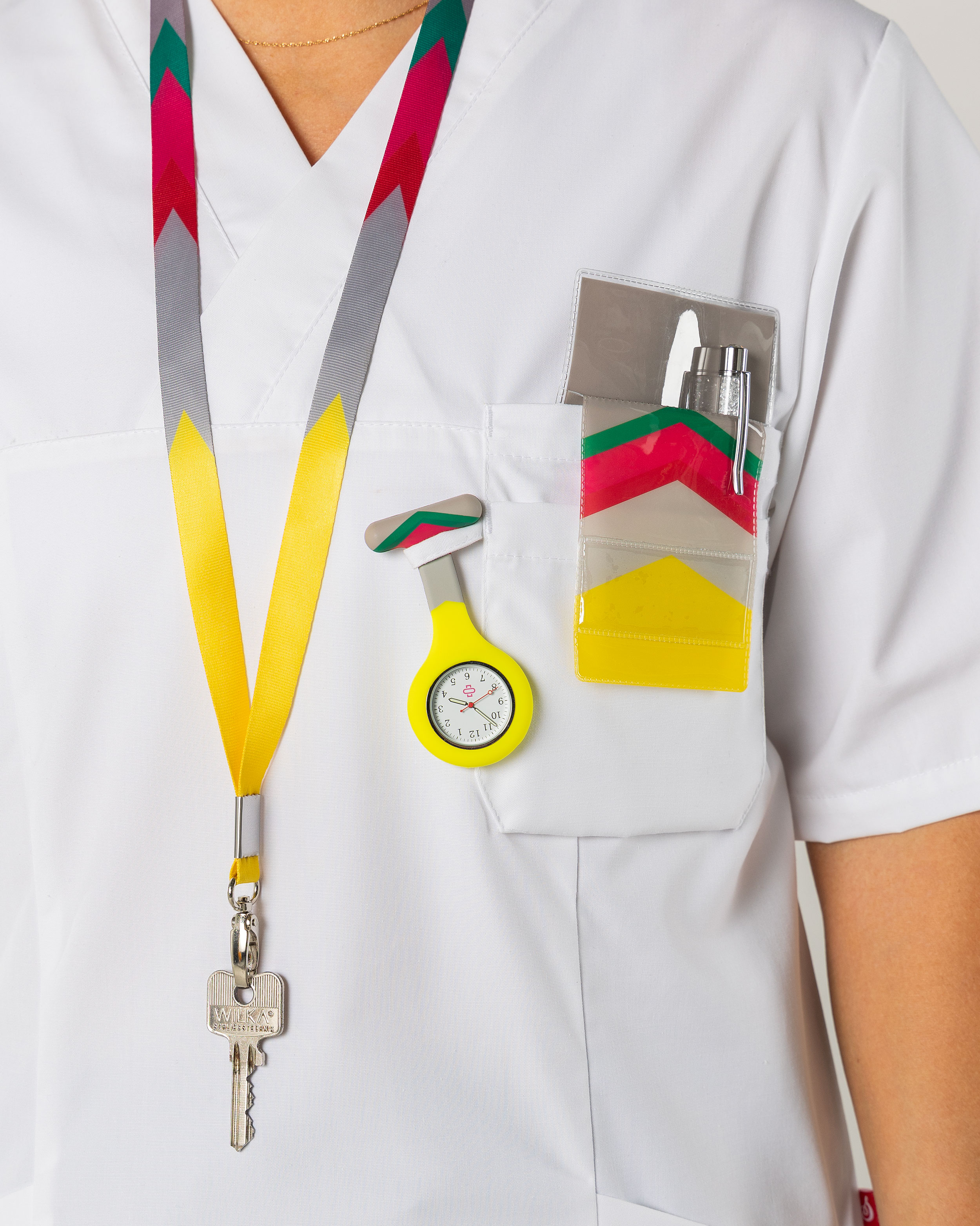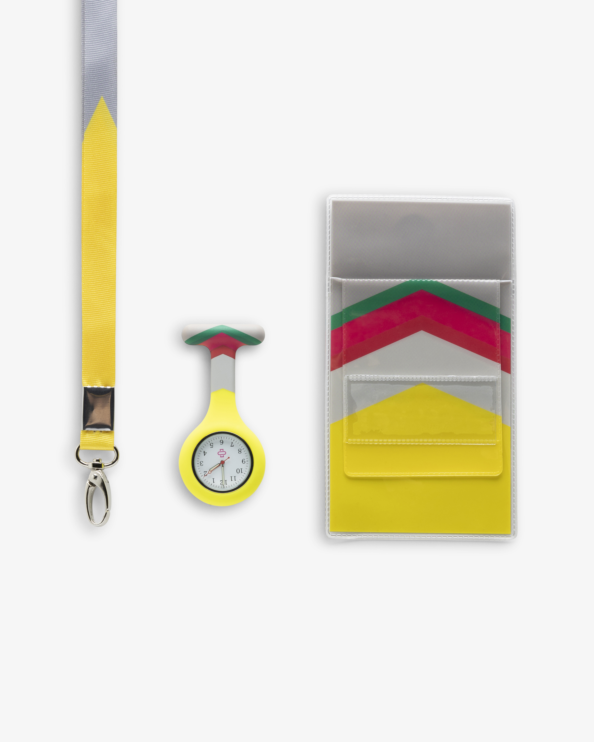 Käytännöllinen ja tyylikäs setti, jossa on erilaisia työtarvikkeita kuten yhteensopivat silikonikello, avainnauha ja kynätasku. Tämän sarjan avulla voit seurata työaikaa, pitää keskeiset työtarvikkeet käden ulottuvilla ja tuoda persoonallisen vivahteen työasusi tyyliin.