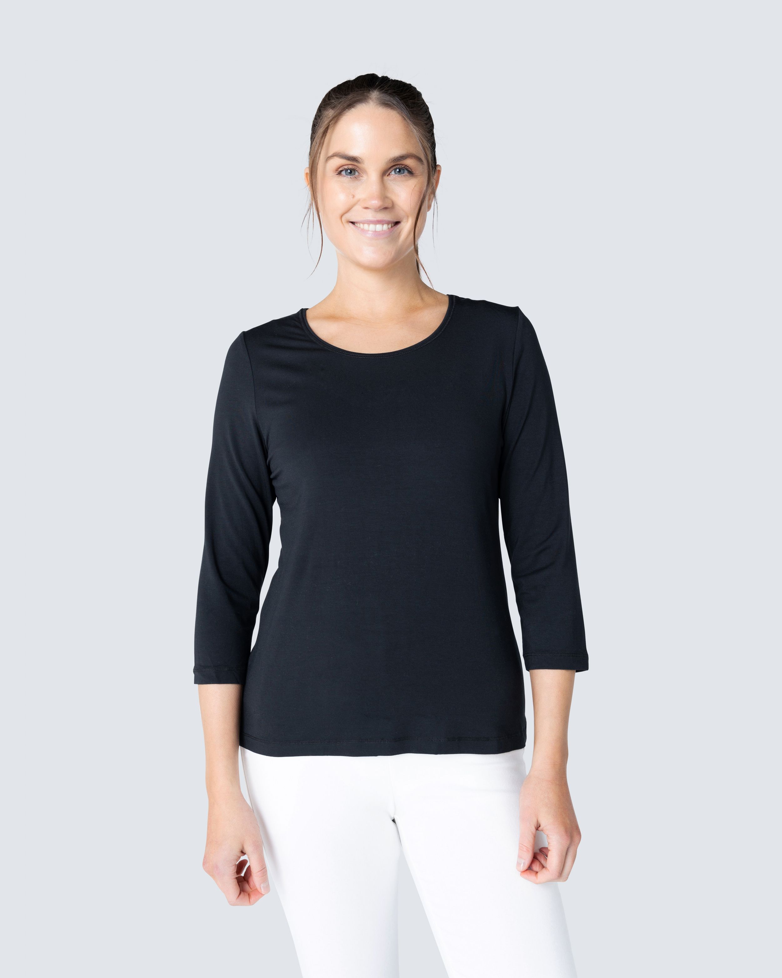 WAW - Wear At Work:in naisten 3/4-hihainen yläosa on pehmeästä modaalista valmistettu. Modaalilla on hyvä imeytyminen ja hengittävyys ja sen kestävyys on korkea. Elastaani parantaa elastisuutta ja antaa vaatteille erinomaisen istuvuuden. Tyylikäs väri tekee vaatteesta helpon yhdistää muihin vaatteisiin ja yksityiskohtiin. Malli on tiukka ja kaula-aukko on pyöreä. Takaosa on peitetty.